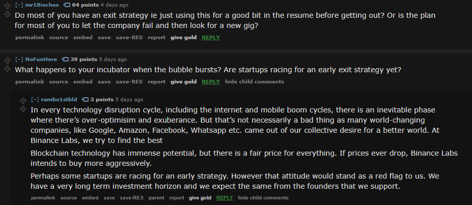 I don't fully trust any of the exchanges. Not even CZ's exchange. About the reddit AMAs, I think censorship is an incredibly bad problem for user experience on reddit. Few hands have centralized control. Steemit on the other hand has downvotes and upvotes. But the content is never deleted. Things like that make me think reddit will die off eventually.