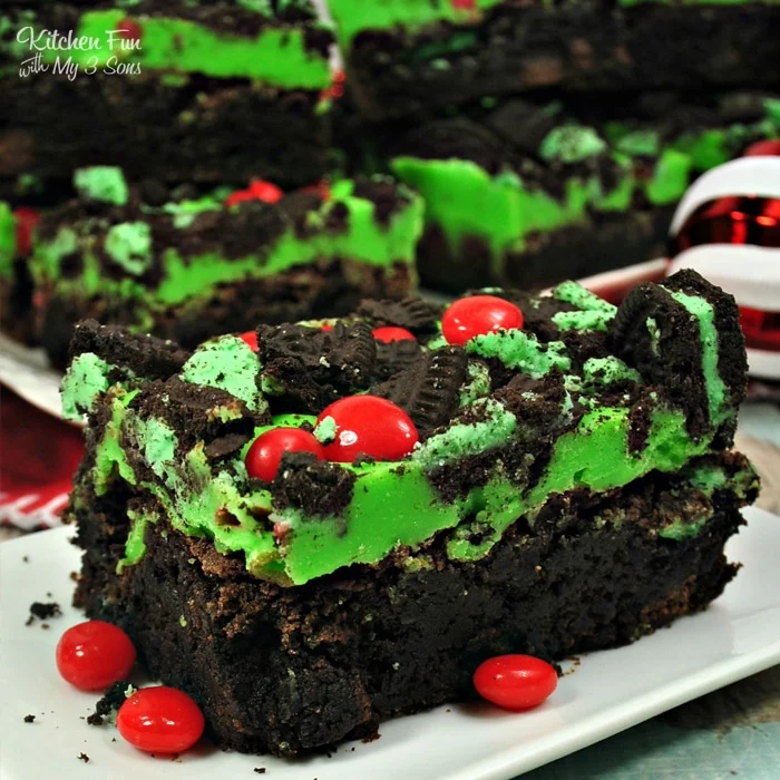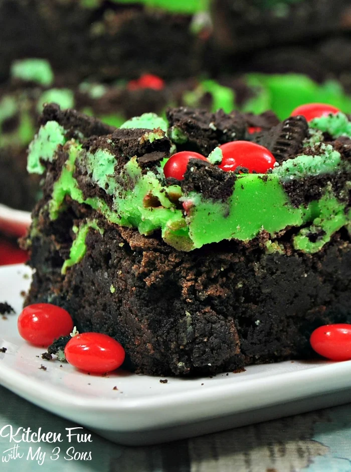 Nothing about Grinch Brownies is "grinchy." They are a combination of dark chocolate and mint that will make any Grinch's heart swell by at least three sizes.