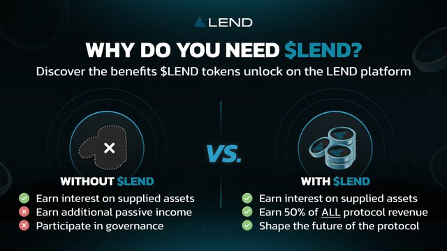 $LEND tokens will be the native token for the LEND protocol. Within the token structure, the token will give holders governance and voting rights in important decisions for shaping the future of the platform. It doesn’t end there though…