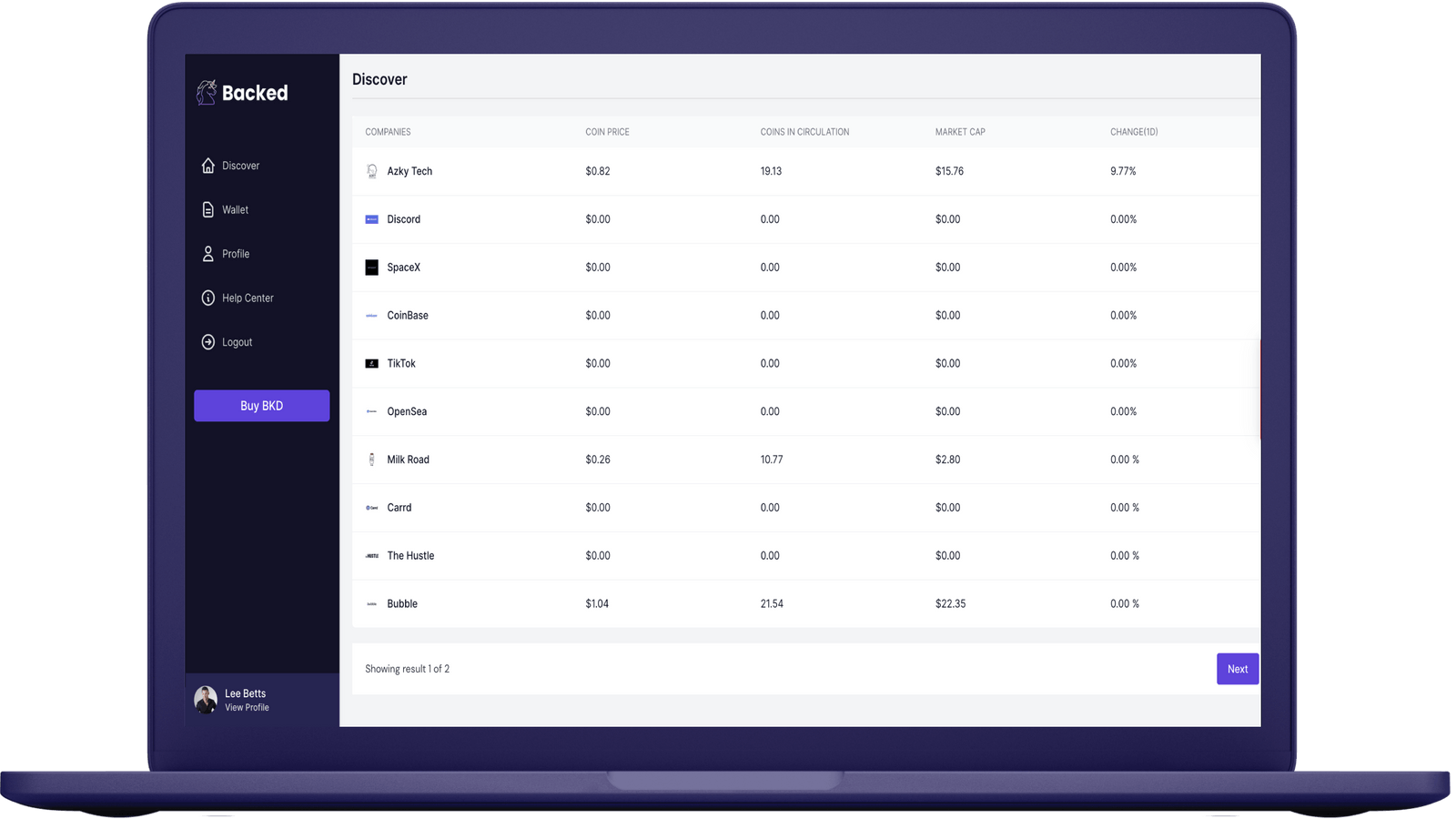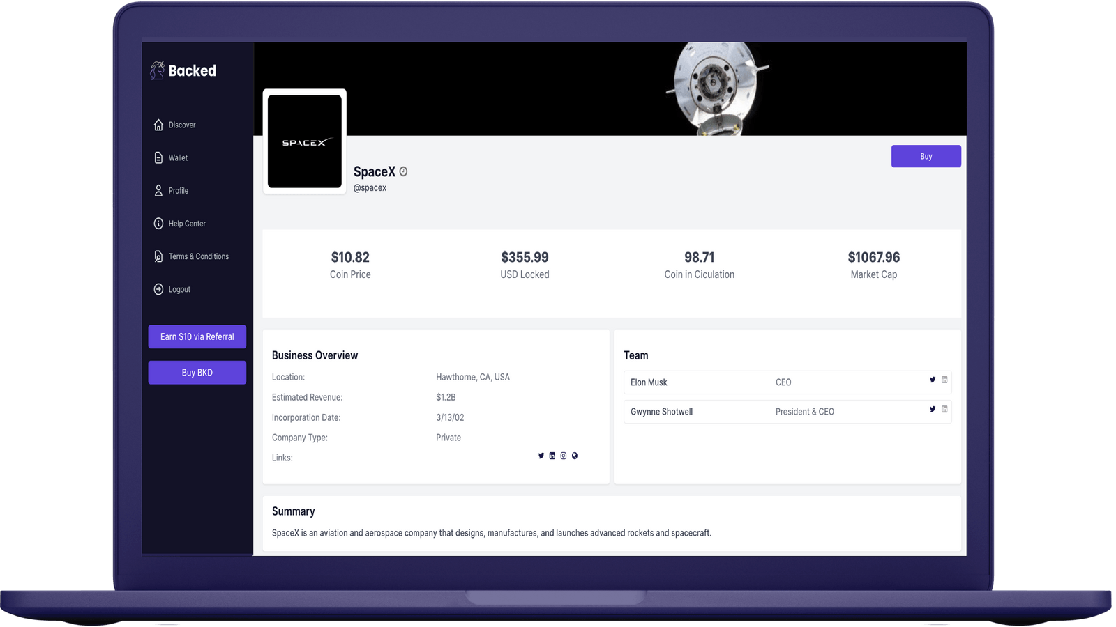 To own a companycoin, simply create a profile/account, attach your MetaMask wallet, and buy BKD using BTC, ETH, or USD.