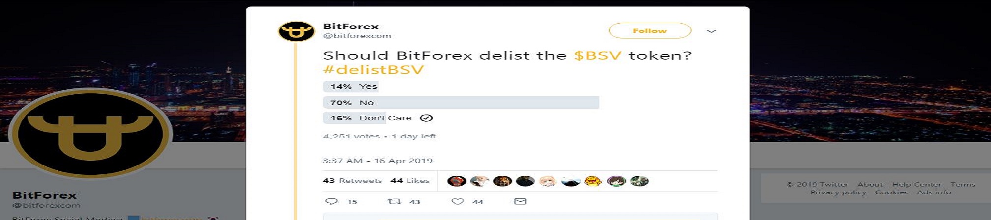 BitForex Exchange Has a Poll on Twitter: "Should BitForex delist the $BSV token?"