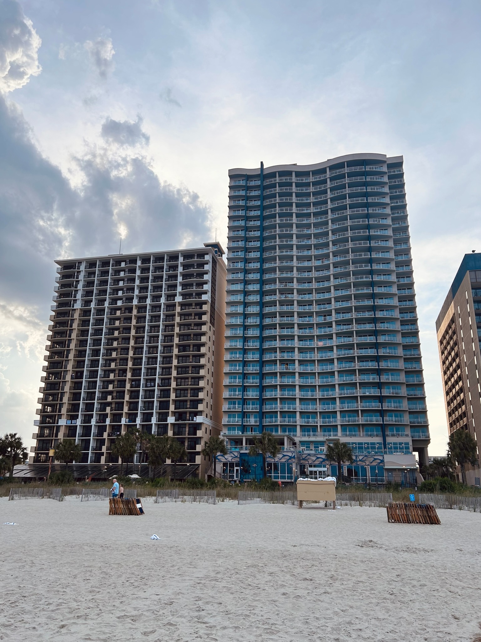 nun waren wir also endlich angekommen an unserer nächsten Station für die nächsten Tage. Das Hotel war einfach hervorragend. Schönes Zimmer, eine wunderschöne Aussicht auf das Meer aus dem 6.ten Stock und auch die Poolanlage des Hotels konnte sich wirklich sehen lassen. Und das war ja auch wichtig, denn Myrtle Beach war sozusagen der Badestop unseres Urlaubs.