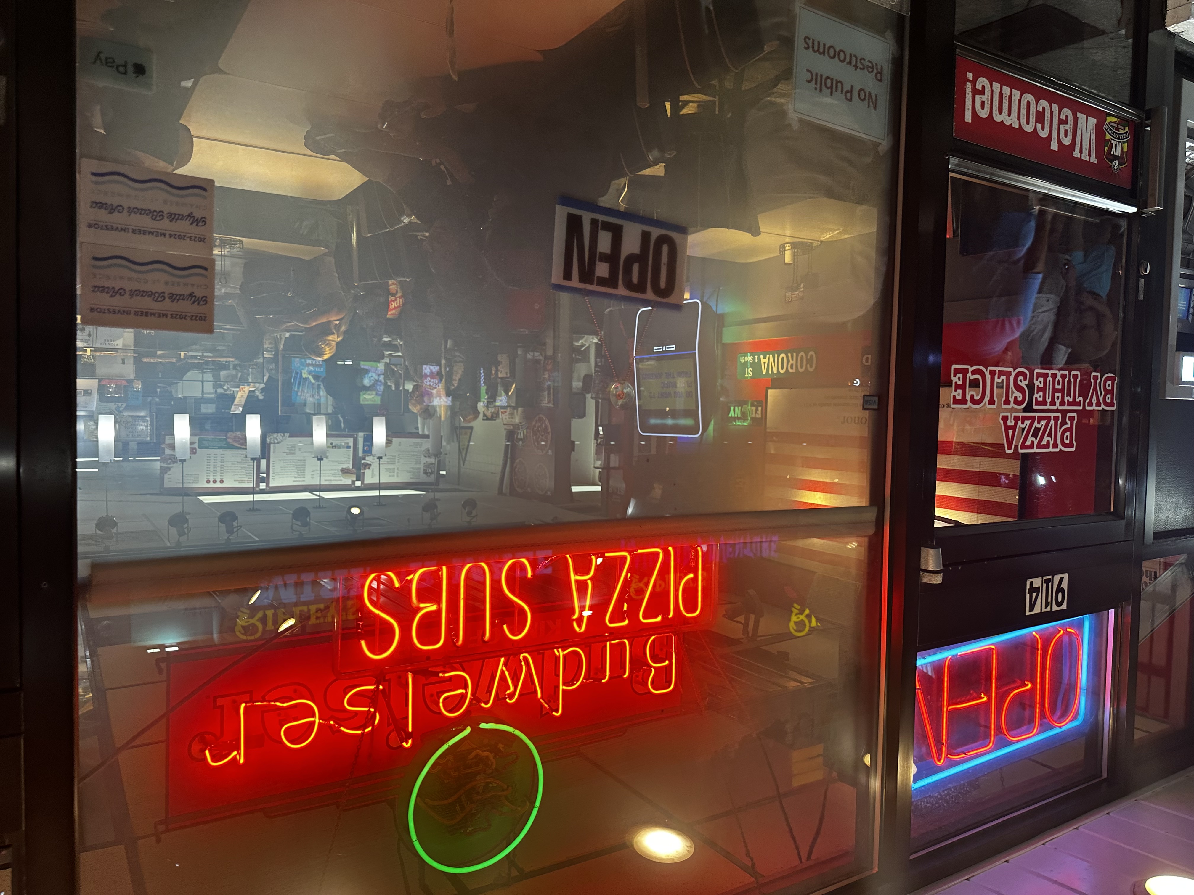 Auf unserem Weg kamen wir an vielen Geschäften, Restaurants und einem Vergnügungspark vorbei, bevor wir unser Restaurant für den Abend fanden: New York Pizza Kitchen mit echter New Yorker Style Pizza. Ein uriger amerikanischer Laden mit tatsächlich sehr leckerer und auch recht günstiger Pizza.