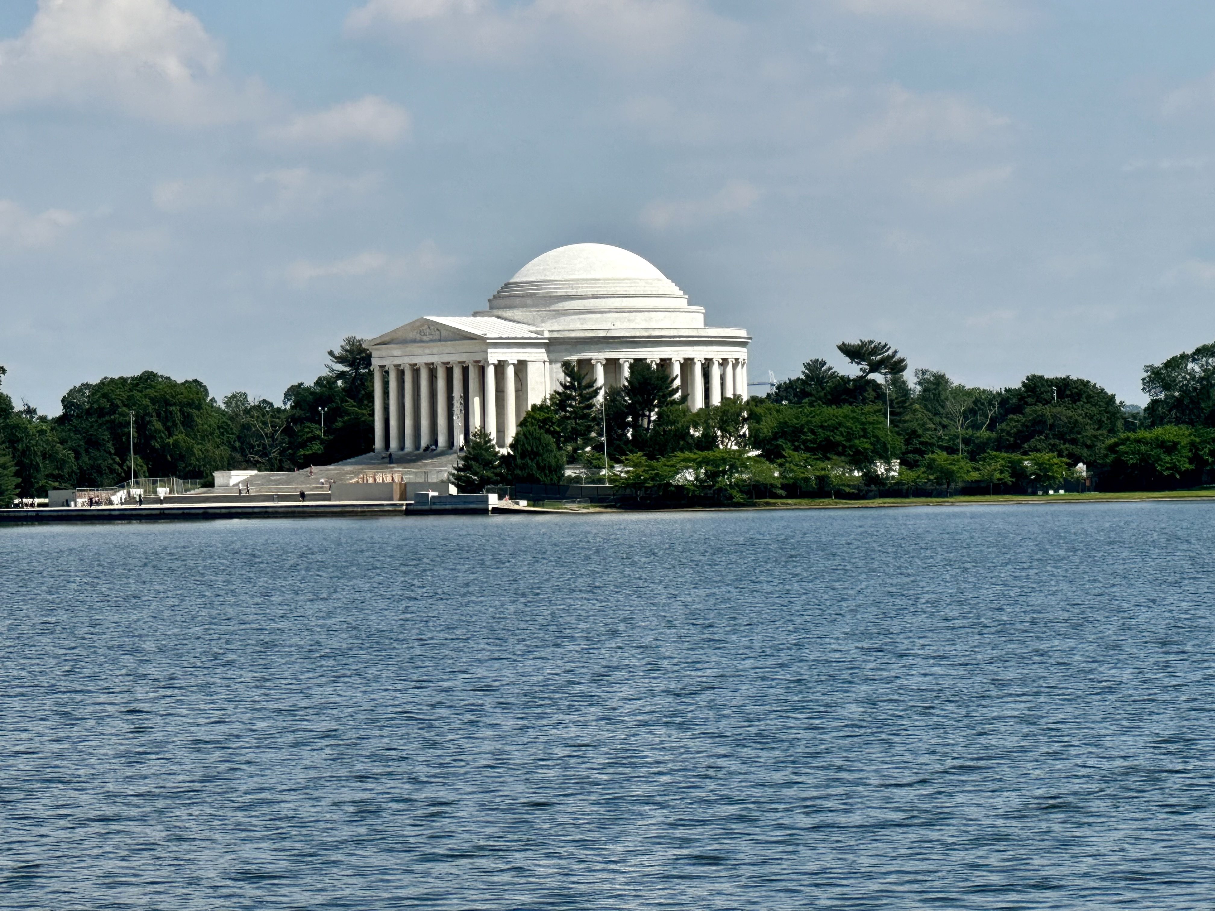 Zum Abschluss unserer Radtour lag nun noch das Jefferson Memorial vor uns, eines der bekanntesten in Washington. es ist dem dritten Präsidenten der Vereinigten Staaten, Thomas Jefferson, gewidmet. Das Denkmal ist im Stil des Pantheons in Rom gestaltet, mit einer großen Kuppel, die von 36 Säulen getragen wird. Die Kuppel hat einen Durchmesser von 18,6 Metern und ist mit einem Fresko verziert, das den Triumph der Demokratie darstellt. Im Inneren des Denkmals befindet sich eine 5,8 Meter hohe Bronzestatue von Jefferson, die von dem Bildhauer Rudolph Evans geschaffen wurde. Die Statue zeigt Jefferson in einer sitzenden Position, umgeben von Inschriften mit Auszügen aus seinen Schriften.