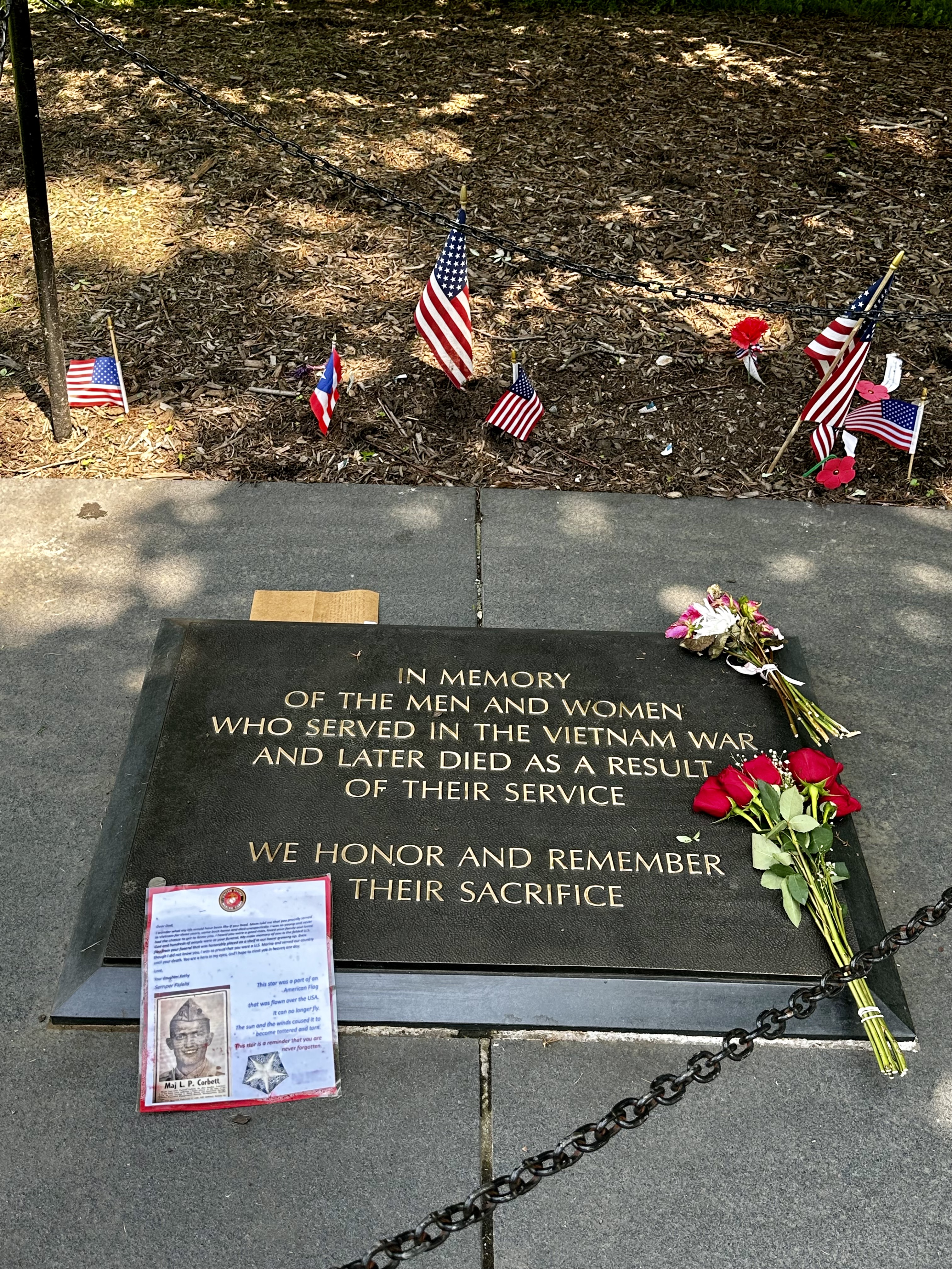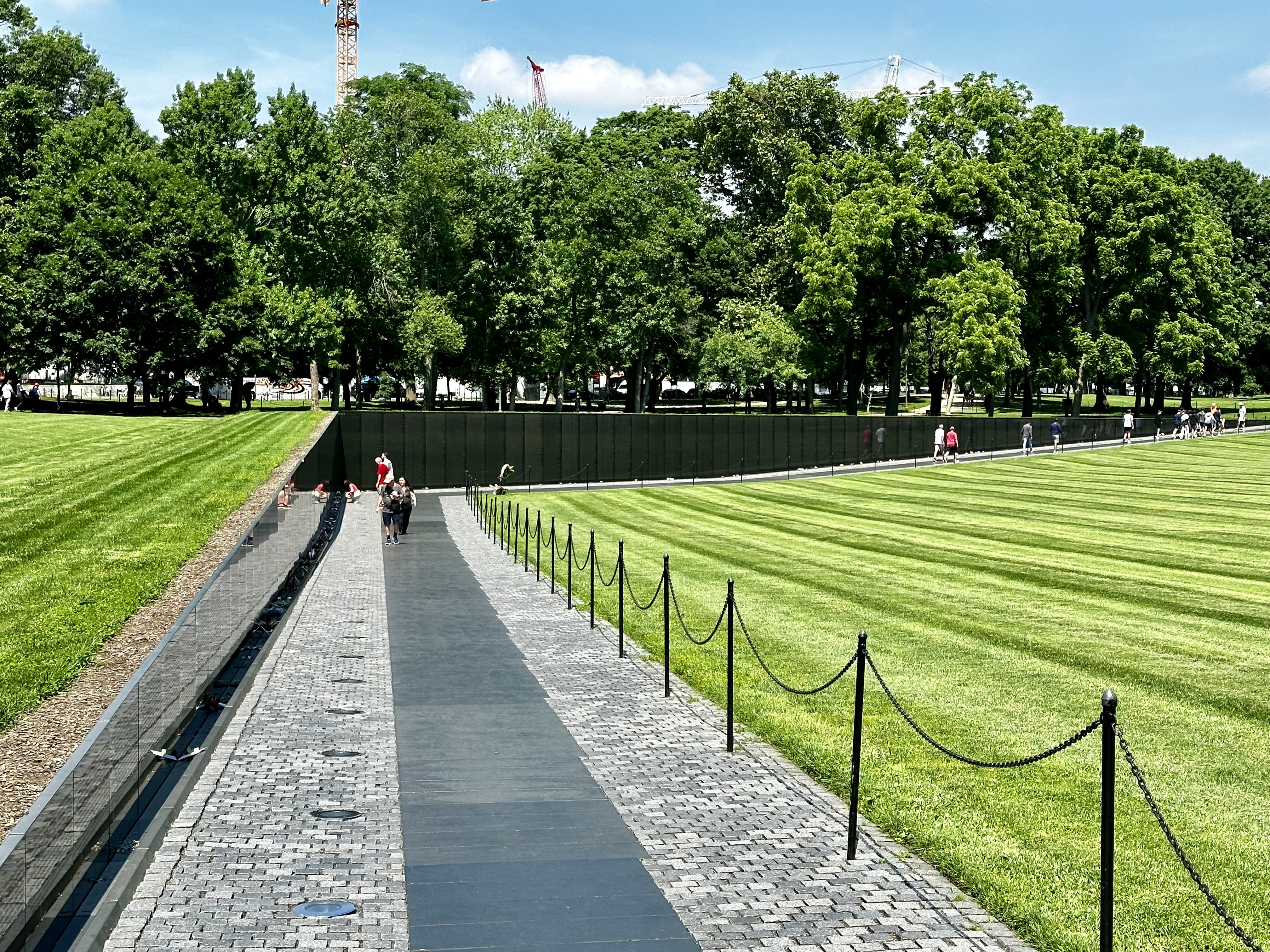 Das Vietnam Veterans Memorial ist eine ergreifende Gedenkstätte, die den amerikanischen Soldaten zu Ehren dient, die im Vietnamkrieg gefallen sind oder vermisst werden. Es ist eines der bedeutendsten Denkmäler auf unserem Weg durch die National Mall. Das Denkmal besteht aus zwei schwarzen Granitwänden, die sich über 150 Meter lang und 3 Meter hoch erstrecken. In die Wände sind chronologisch die Namen von mehr als 58.000 gefallenen und vermissten Soldaten eingraviert. Das Design ist schlicht und reflektierend und soll die Trauer und den Verlust widerspiegeln, die durch den Krieg verursacht wurden. Überall waren Bilder und Blumen für einzelne Soldaten niedergelegt, wirklich ergreifend, selbst für Unbeteiligte wie uns.