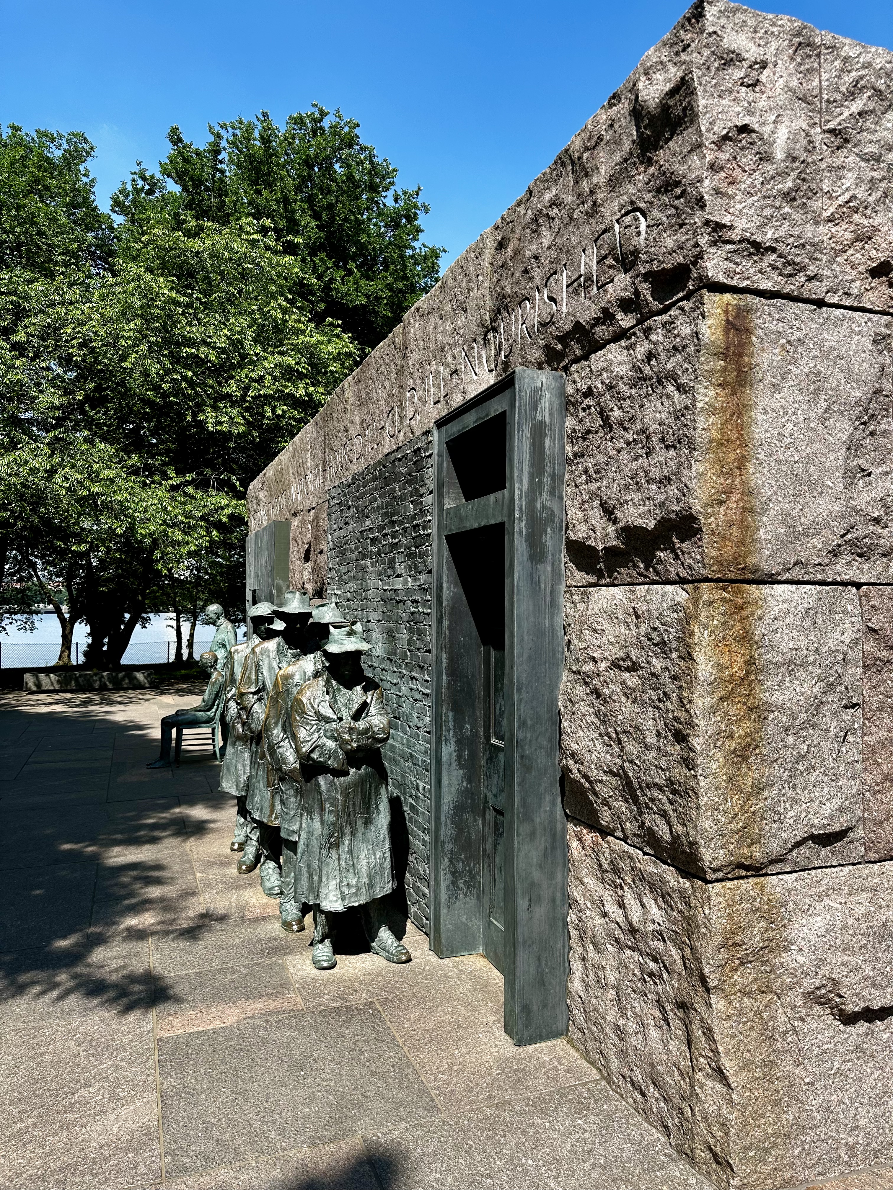 As the day progressed, we paid our respects at the Franklin D. Roosevelt Memorial, honoring the 32nd President of the United States. The memorial's four outdoor "rooms" represent each of Roosevelt's presidential terms, featuring sculptures, murals, and cascading waterfalls symbolizing the challenges and triumphs of his era. The memorial stands as a testament to Roosevelt's leadership during times of crisis, including the Great Depression and World War II.