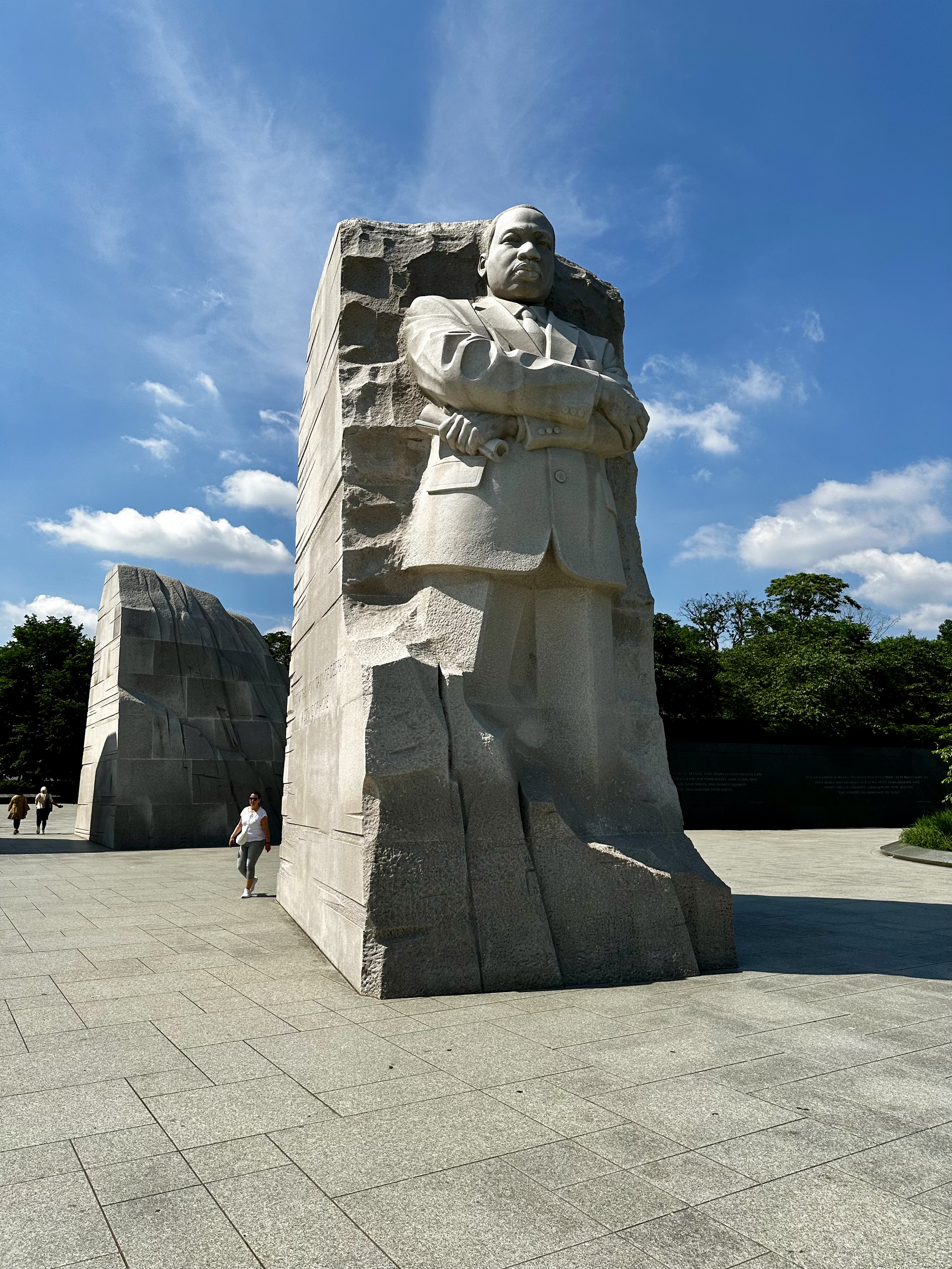 Our next stop was the awe-inspiring Martin Luther King Jr. Memorial, dedicated to the life and legacy of the civil rights leader. The centerpiece, the Stone of Hope, is a 30-foot statue of Dr. King emerging from two massive granite slabs, representing his emergence from the struggles of the Civil Rights Movement. The surrounding inscription wall features excerpts from Dr. King's speeches and writings, serving as a powerful reminder of his enduring fight for equality and justice.