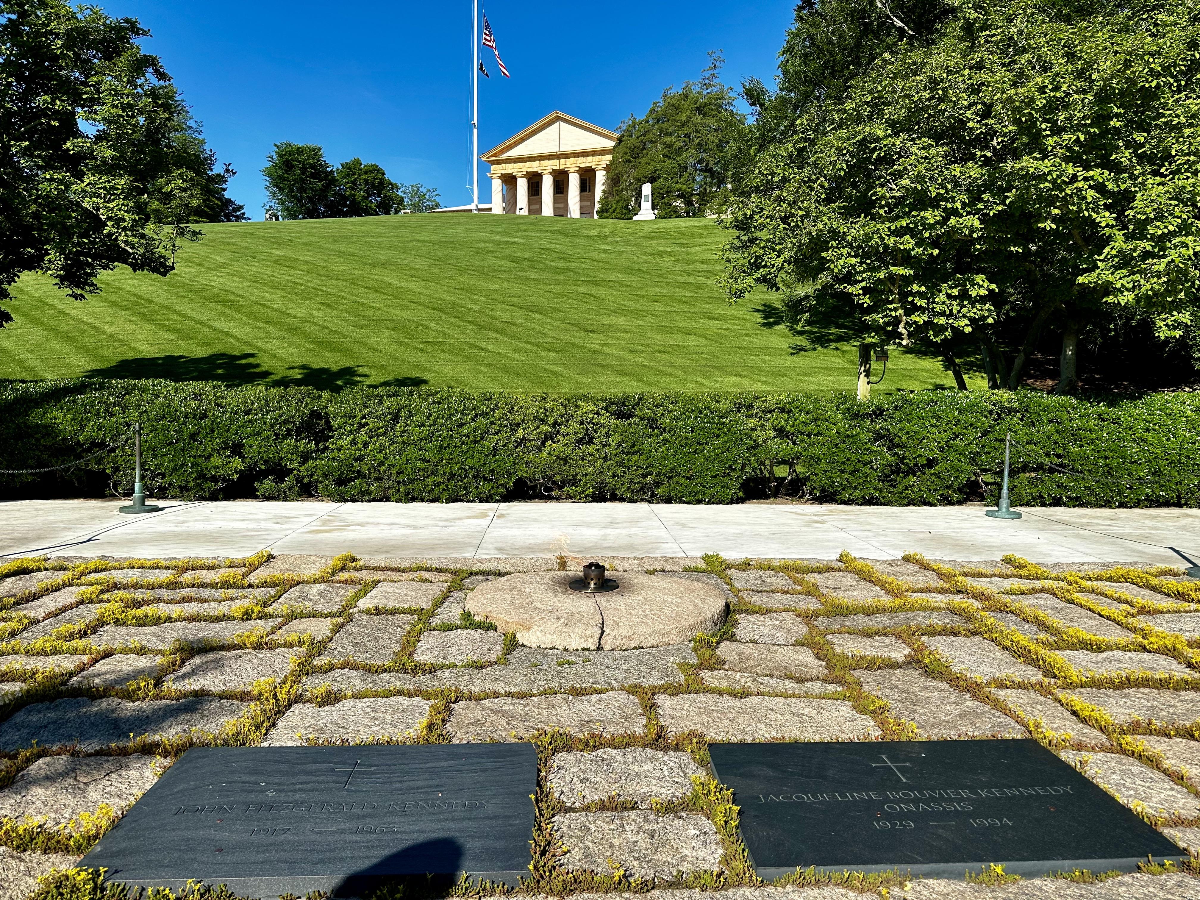 Unser Besuch begann mit einem stillen Moment am Grab von John F. Kennedy, dem 35. Präsidenten der Vereinigten Staaten. Die ewige Flamme, die auf seinem schlichten Grab brennt, symbolisiert das unvergängliche Licht seiner Hoffnung und Inspiration, die auch heute noch Millionen von Menschen auf der ganzen Welt erhellt. In unmittelbarer Nähe befindet sich auch das Grab seines Bruders, Robert F. Kennedy, der als Justizminister und Senator für seinen unermüdlichen Einsatz für soziale Gerechtigkeit und Gleichberechtigung in Erinnerung bleibt.