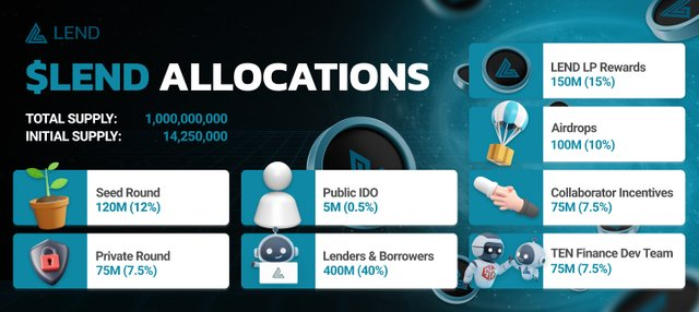 40% - 400,000,000 LEND Allocated for Lenders & Borrowers
