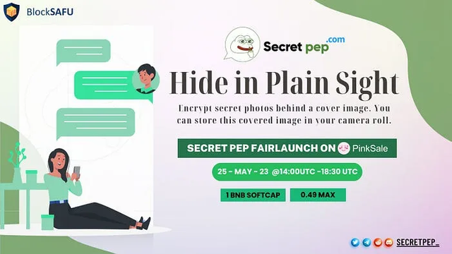 Remain Anonymous with an address only. You don’t need to verify your phone number or email to use SPEP:Chat. Someone can message you using just your BEP-20 address. You can decide to receive messages from anyone or only from whitelisted addresses. TOTAL SUPPLY: 250,000,000,000,000 $SECRETPEP Tokens.