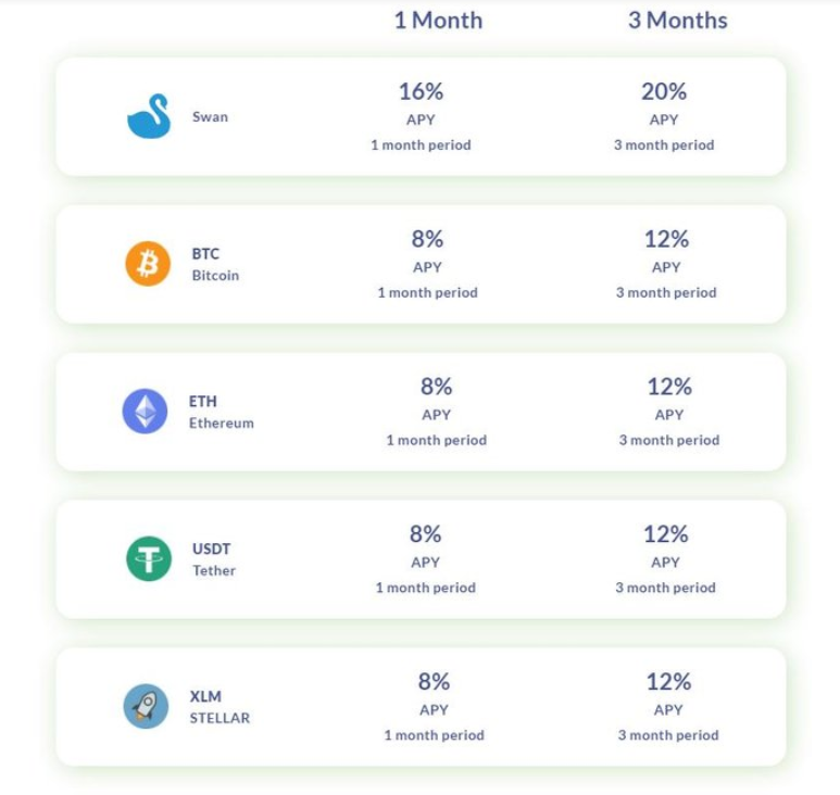 Swan Finance is a Blockchain Technology-based Ecosystem that becomes a bridge between a centralized traditional financial system and a decentralized system, through an Ecosystem designed by their Team, This will provide a new Blockchain technology-based Ecosystem where the Ecosystem combines the two systems into one place. Their ecosystem offers a Platform with an easy-to-use interface for things like earning interest on staked assets, peer to peer lending and other things. Its users store their Assets on the Swan Platform to earn interest with attractive APY besides that users can use their crypto assets as collateral and lend to others to get additional interest when using the Platform on the Ecosystem.