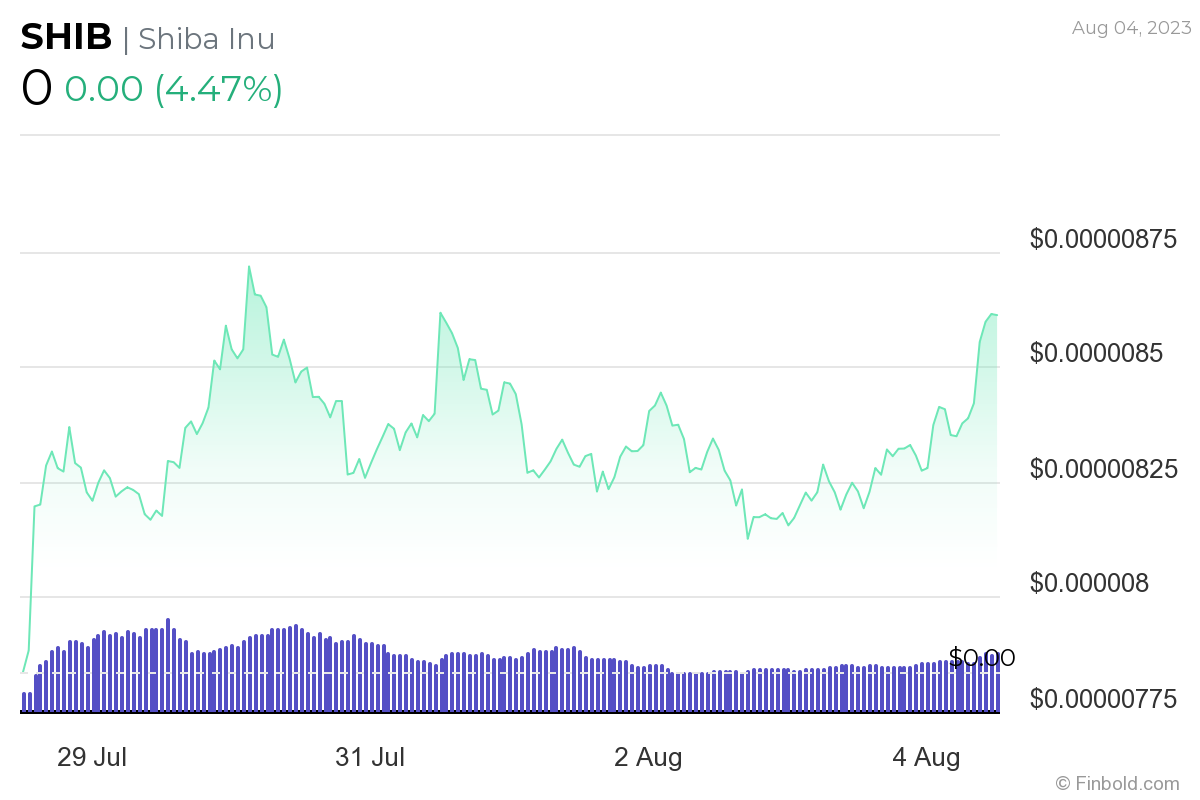 In the meantime, Shiba Inu is changing hands at the price of $0.000008599, recording an increase of 4.47% in the last 24 hours, in addition to gaining 9.77% across the previous week, as well as advancing 14.67% on its monthly chart, as per data on August 4.