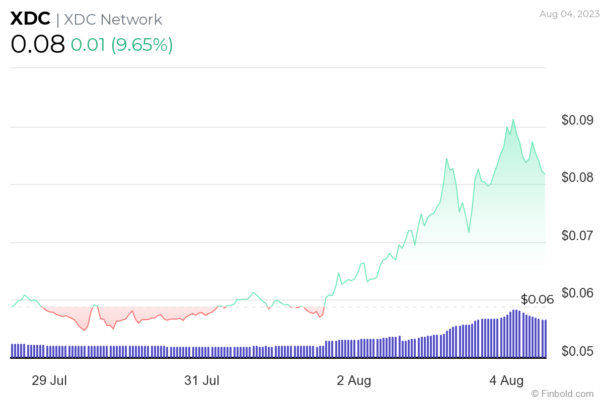 At the same time, Singapore-based XinFin Network’s native cryptocurrency, XDC Network (XDC), recently skyrocketed more than 300% from its monthly low of $0.03 to achieve its one-year high of $0.08, which is the highest level seen since January 2022, and a culmination of a five-day bullish rally.