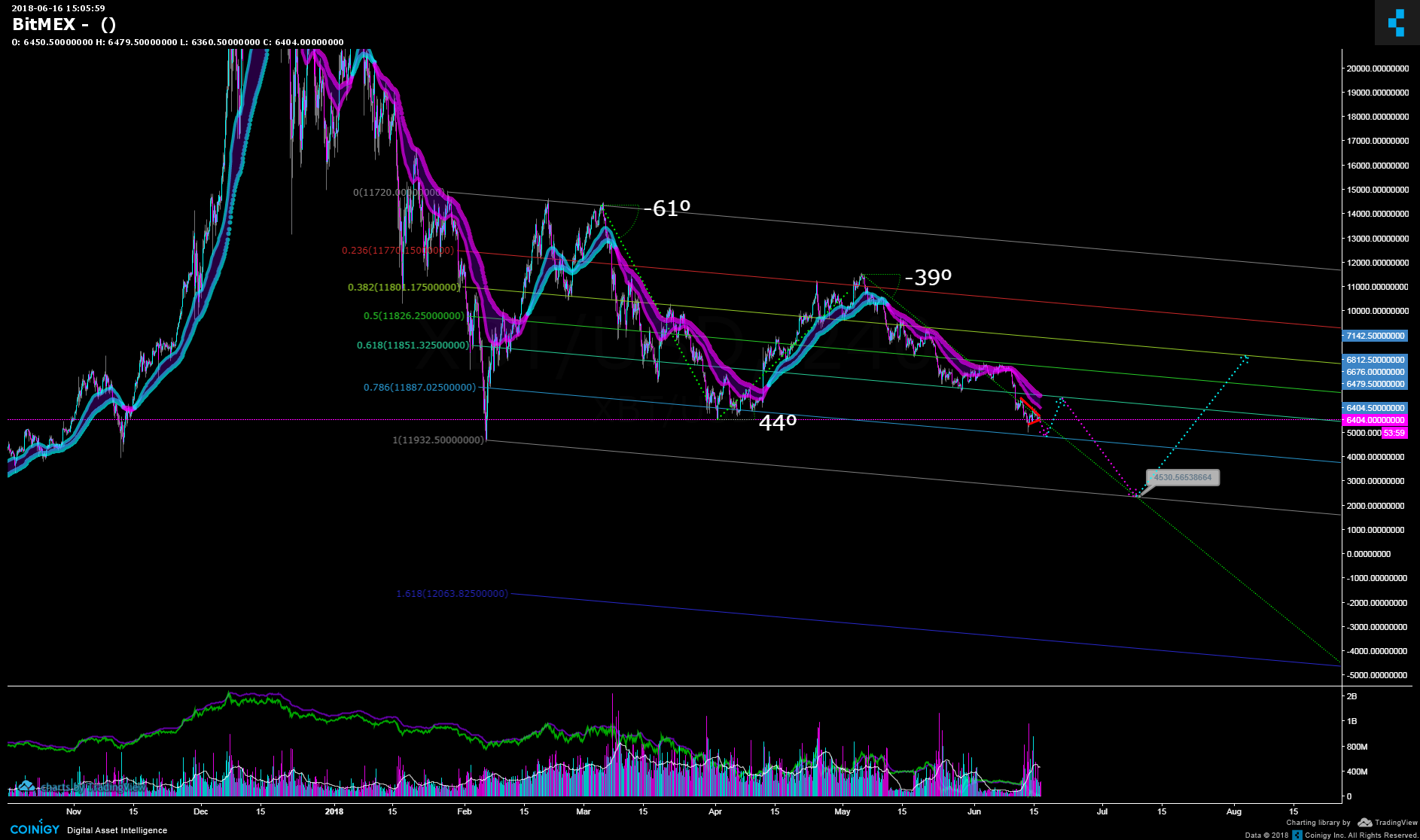 BTC still showing signs of weakness. I anticipate a drop to the $6k level by the end of the weekend. This is a crucial support zone, as a breakdown will trigger several sells as well as stops on long positions, causing a likely drop to the $4500 zone over the next few weeks. Once we go under $5,000 I anticipate buy orders to begin stacking as many HODLers start losing hope.