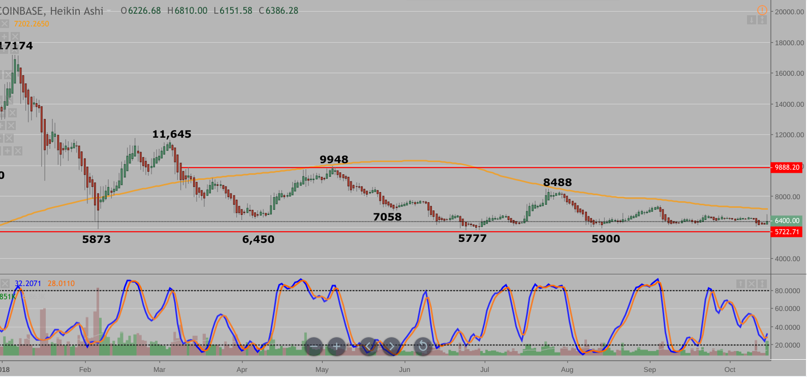 BTC chart review, Oct 15th @ 14:45 PST