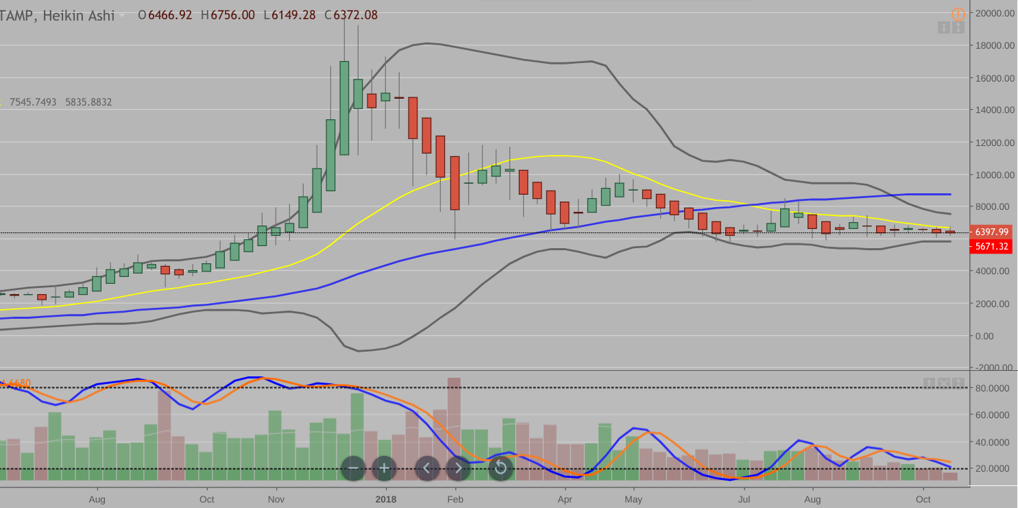 Here is the monthly chart from bitstamp exchange, it has printed a series of red heikin ashi bars illustrating the bearish market since December last year.