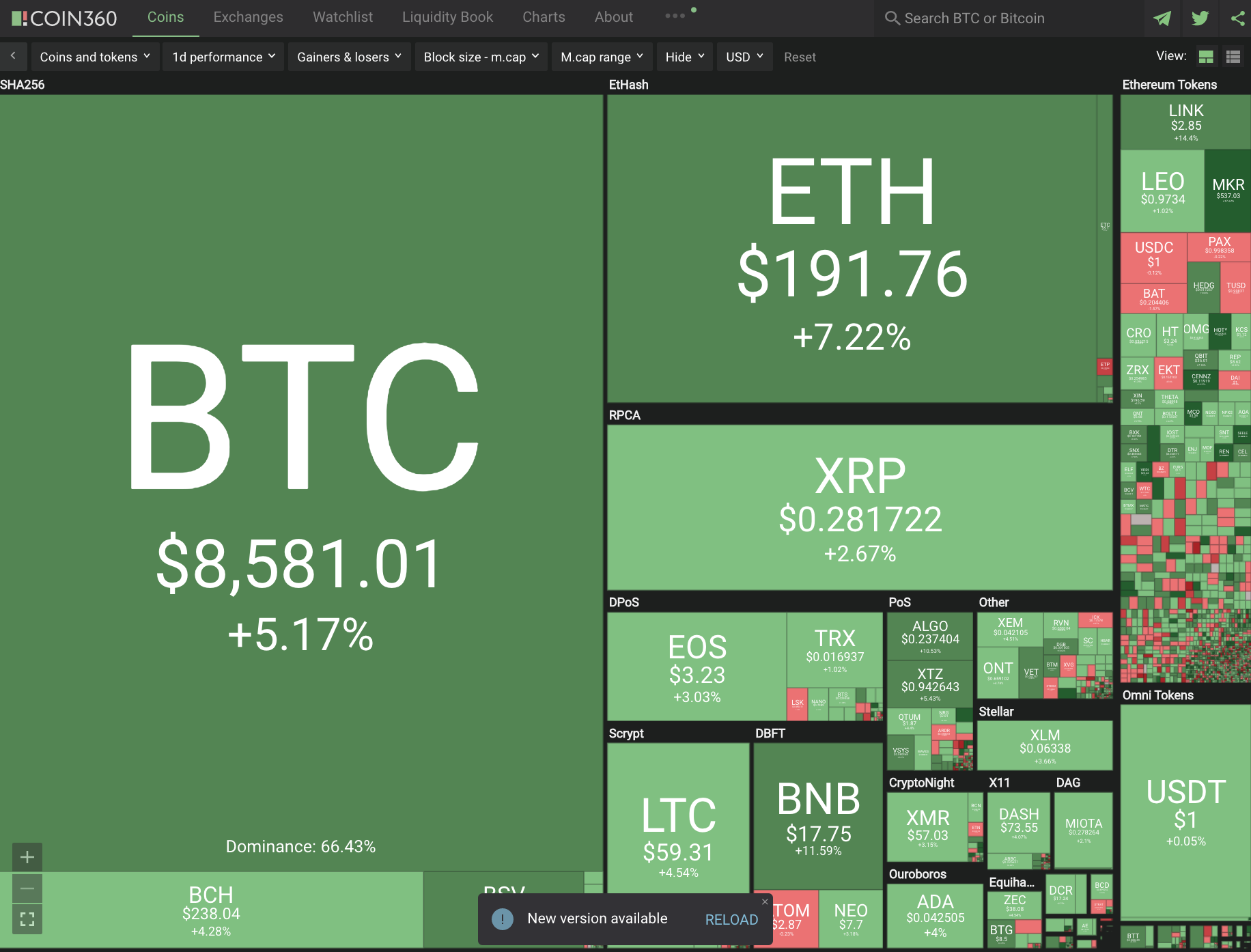 Another green visual of the cryptocurrency market can be seen at coin360.com.