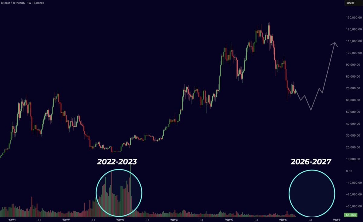 Volume remains relatively weak compared to previous cycle lows — a key signal that capitulation may be incomplete.