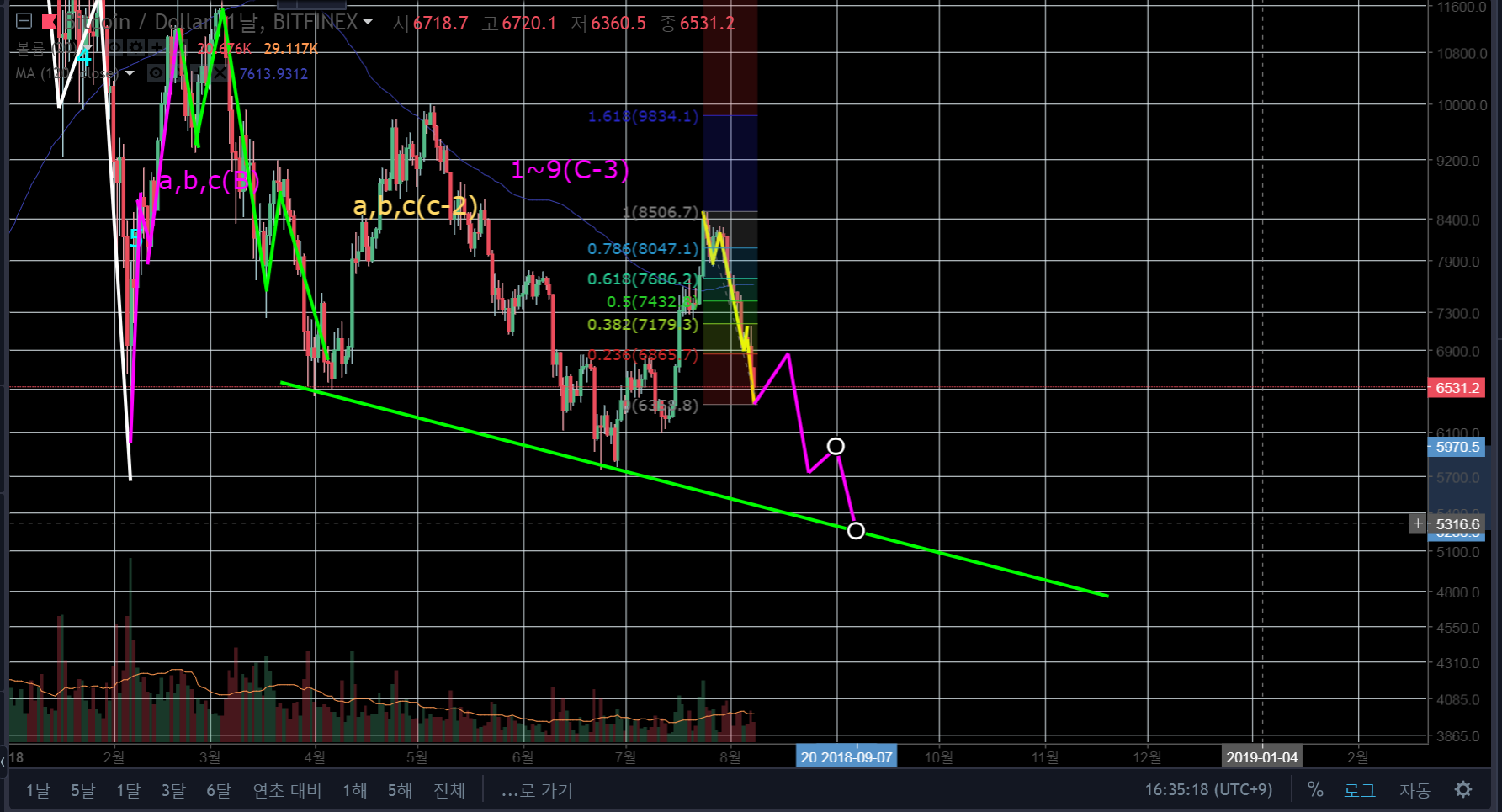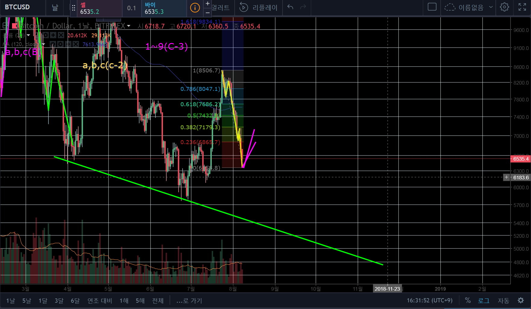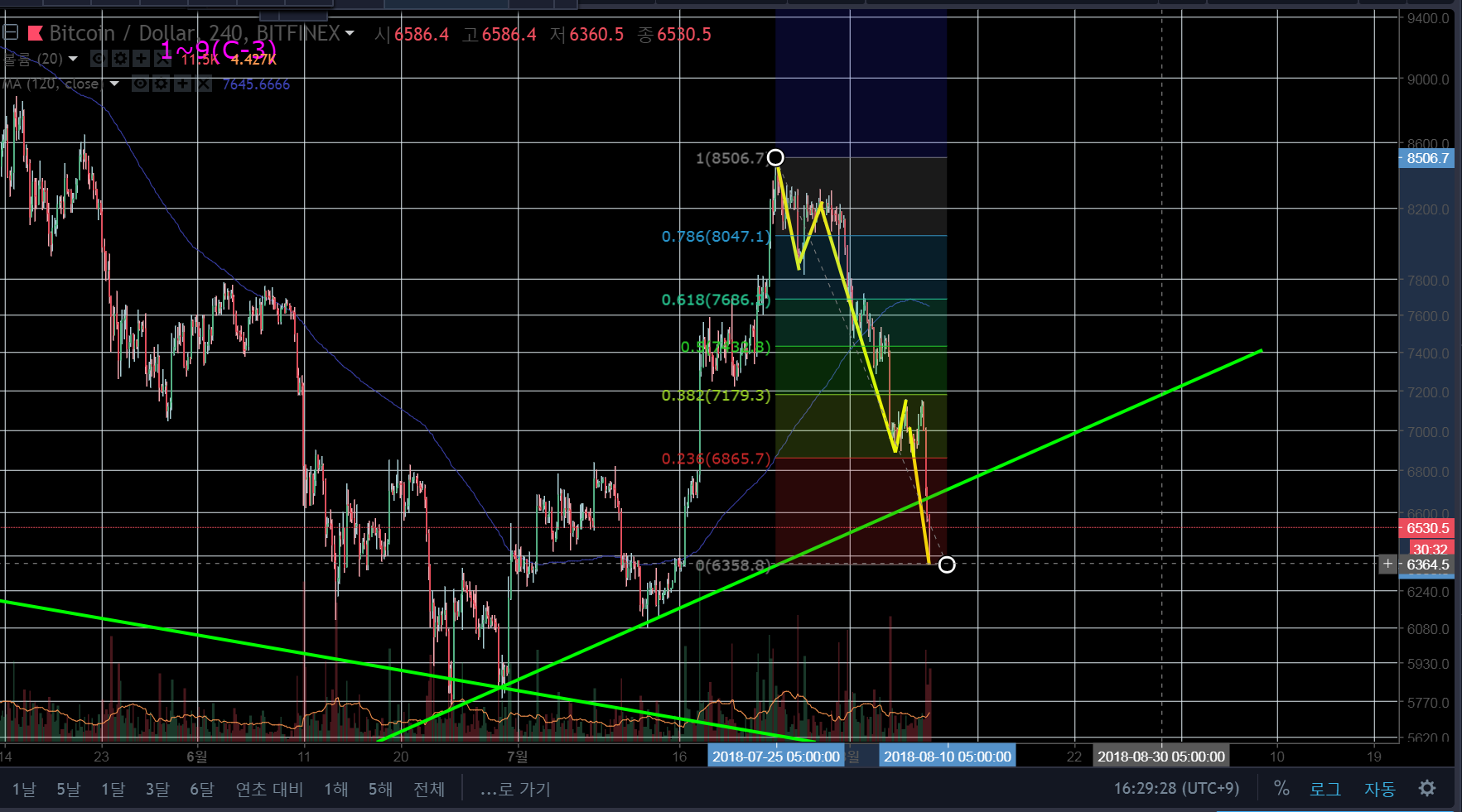 이제 반등파가 나올 차례인데요 0.236(6865) or 0.382(7179) 수준까지의 되돌림을 예상해볼 수 있습니다.