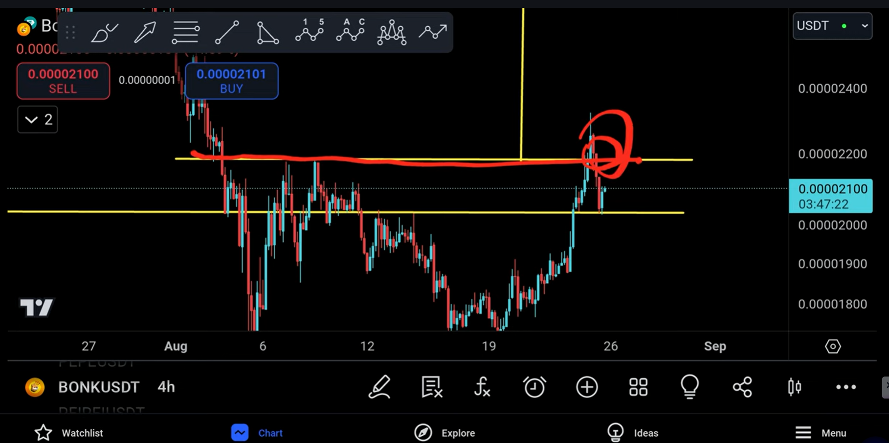 Bonk has failed to do one thing but has been successful in doing another right so what does that mean it has failed to retest successfully you've broken above that resistance and you failed but you were successful in breaking this resistance and retesting it successfully