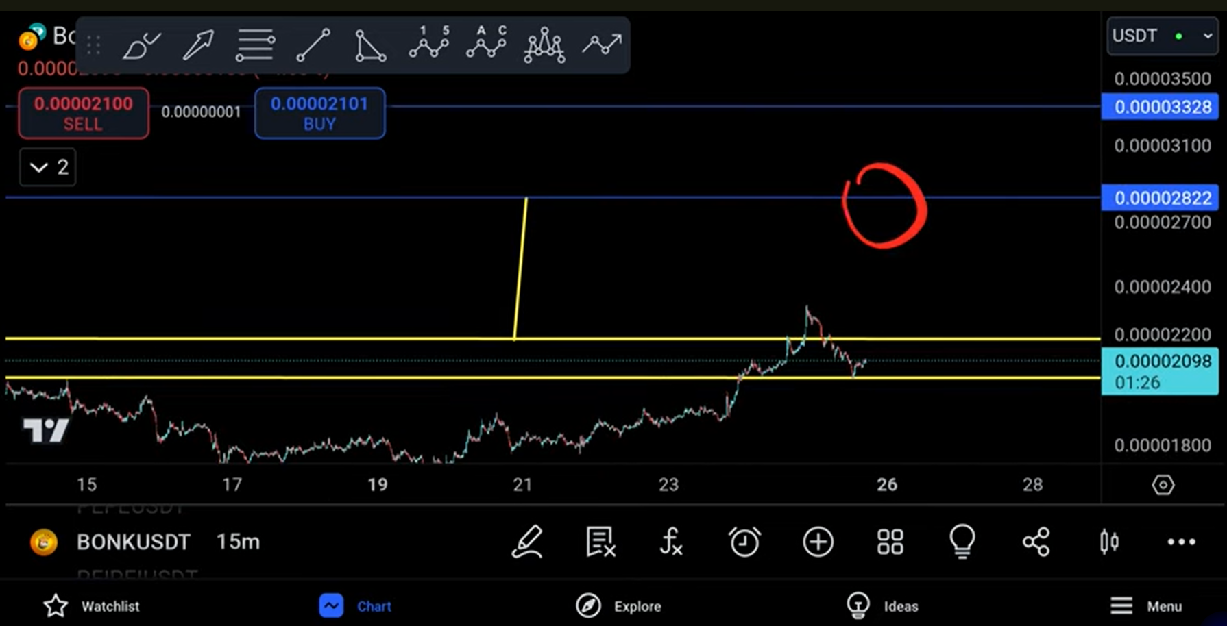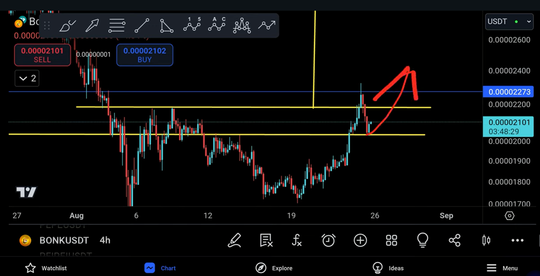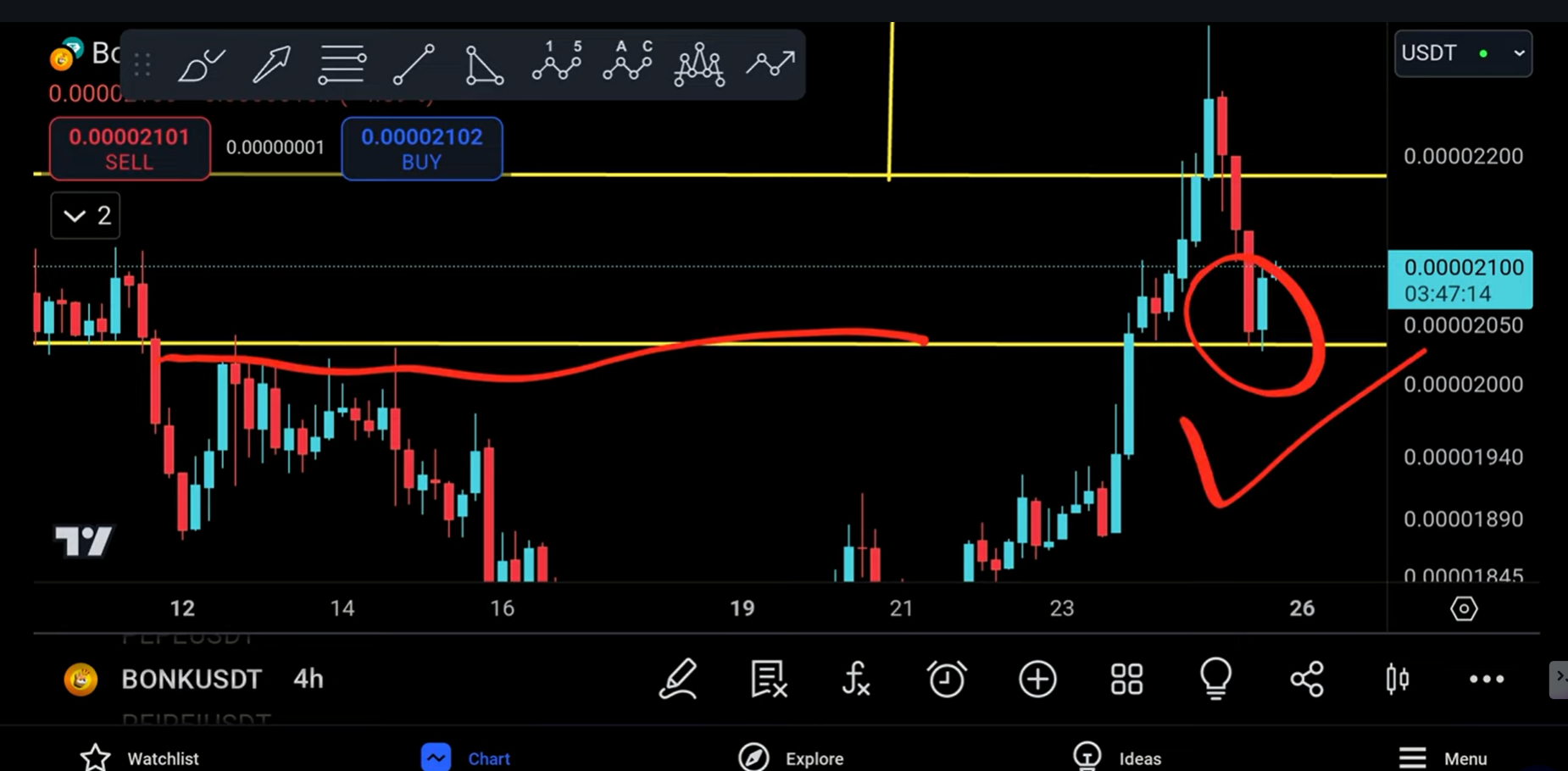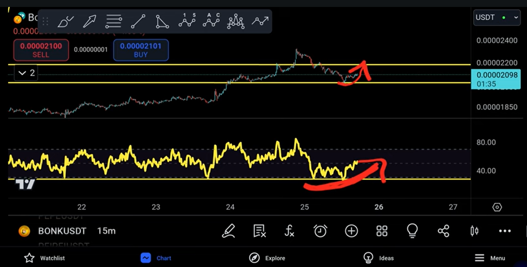 Bonk to come and move to the upside If you check the RSI shows that there's a little bit of nice good buying pressure as well and we might start to push back up again and try to break this pattern for good and continue to go even higher and probably higher to 28 right over there that's what I see, let's see what happens