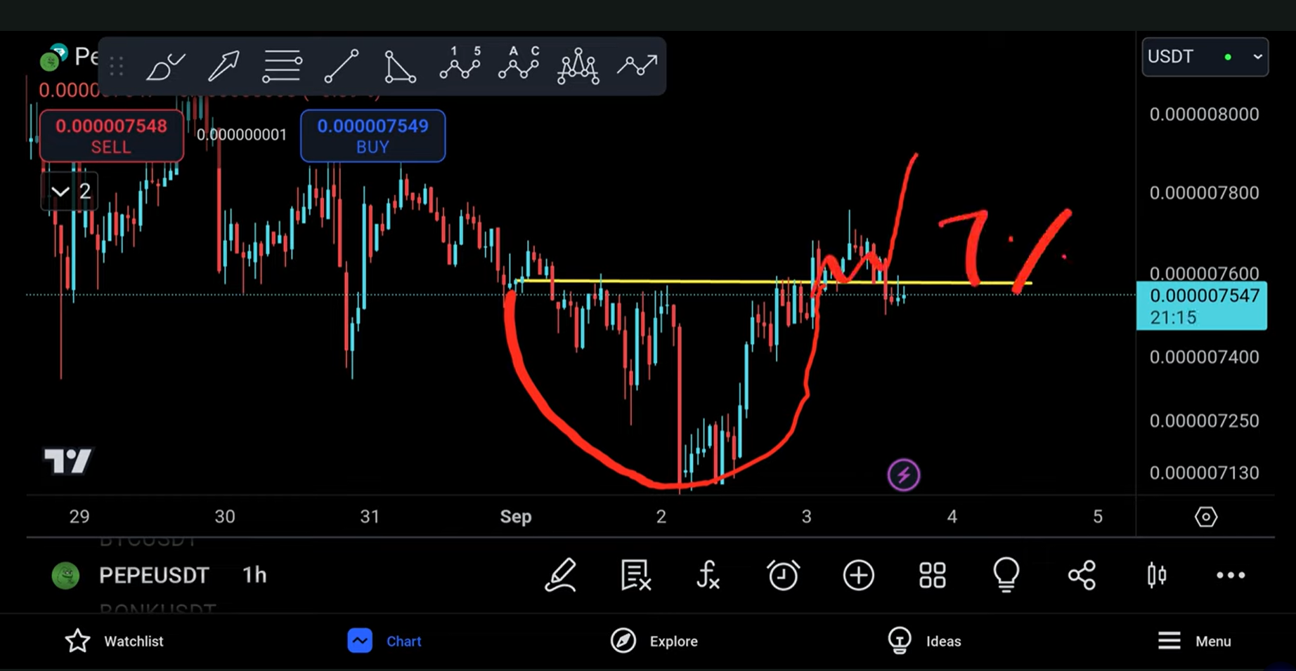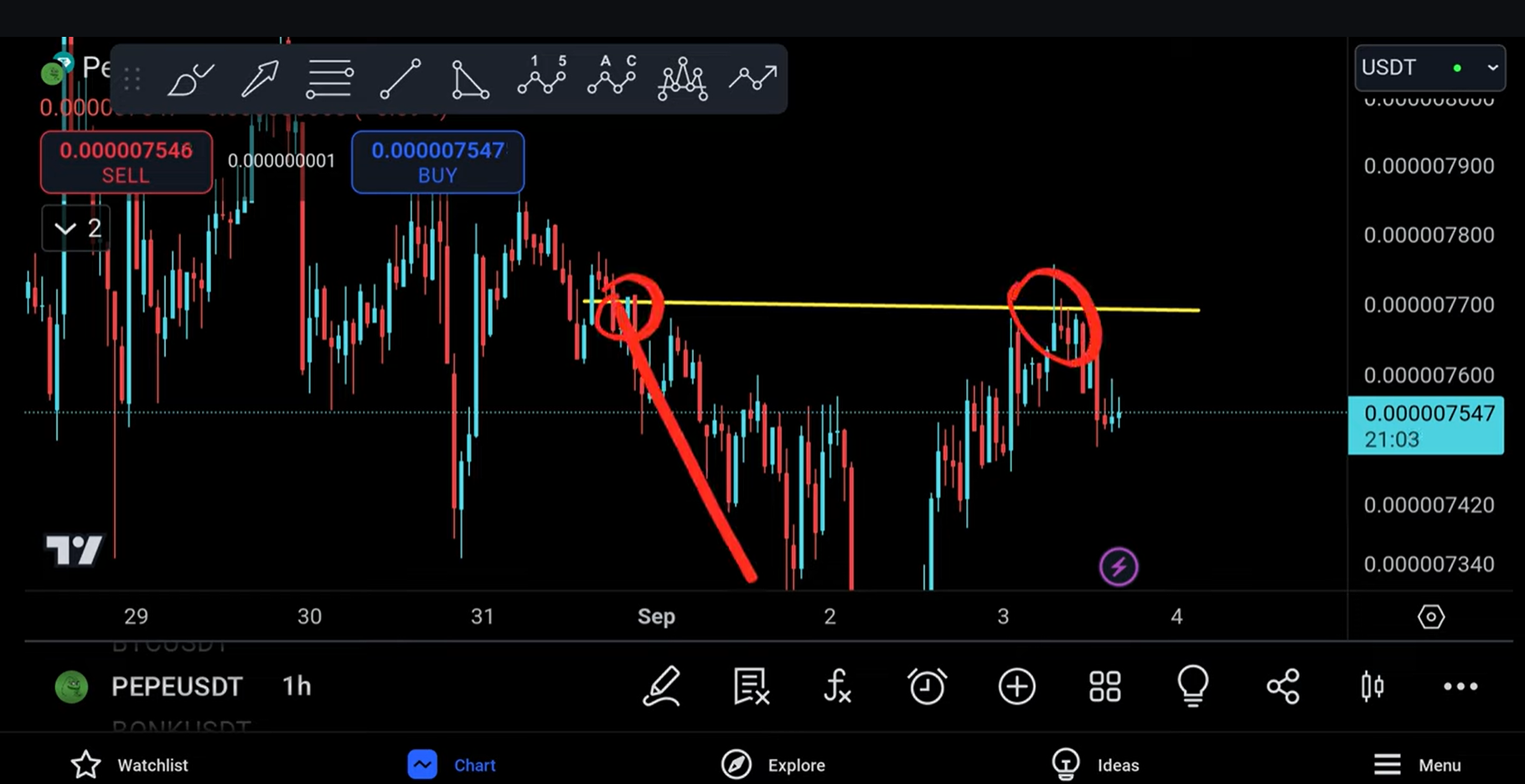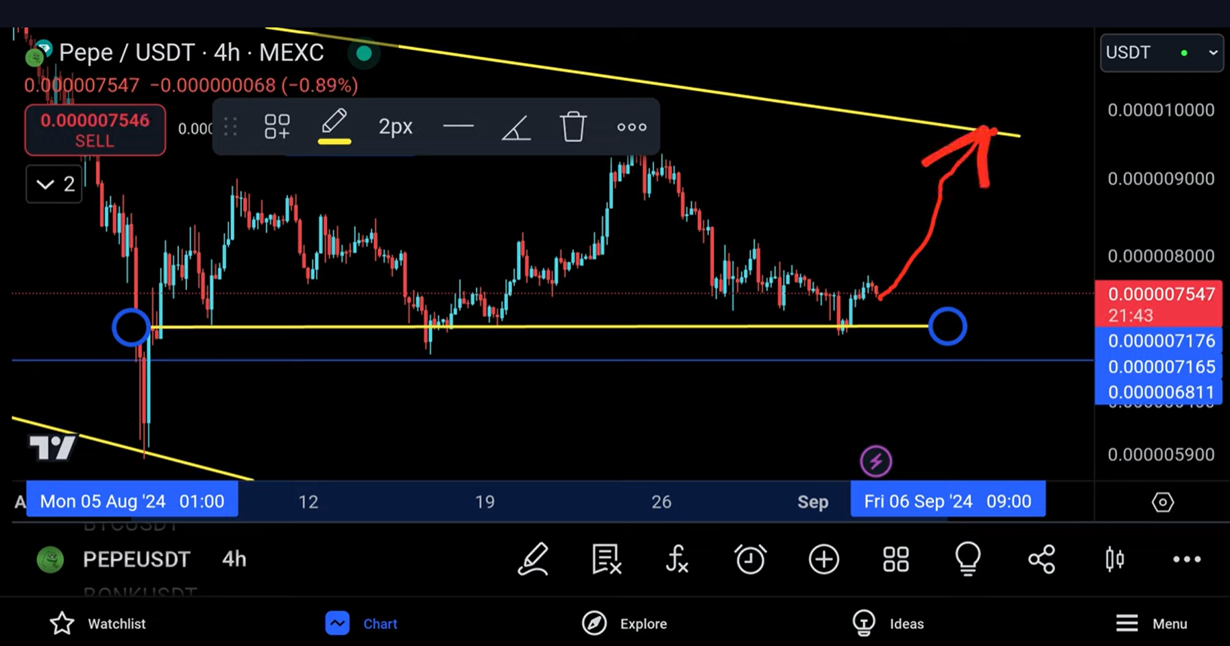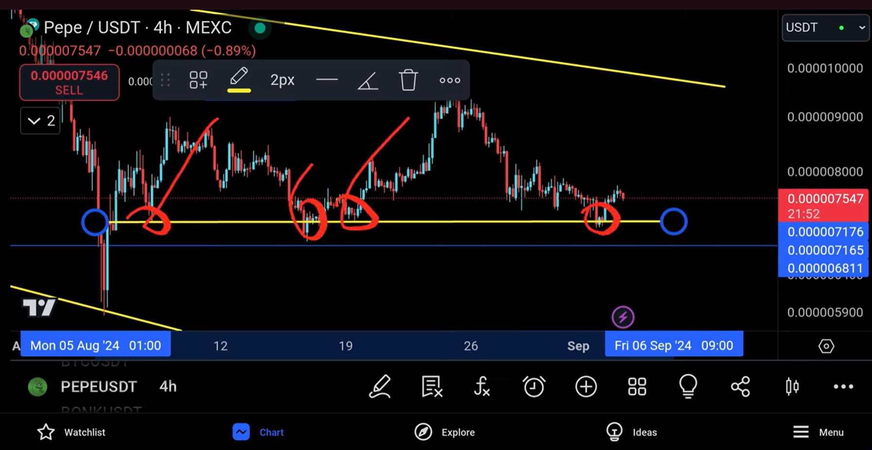 Hi, friends now I have seen a small intention from Pepe previously but then again that intention faded away very very quickly I wanted to take a trade in the middle because of a few hot zones that I saw, and I'm going to tell you what this is so you can see that we do have a bit of a Hot Zone I would say it's almost like an area because we've had many interactions here we've had a touch move up another touch and then you're moving back up once again
