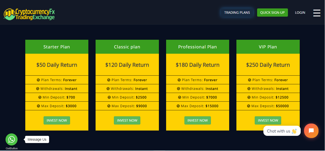 cryptocurrencyfxtradingexchange.com can only offer conditions under which your deposits will run on an ongoing basis, giving you a steady daily income earned every hour for life. Past investment records can show how far cryptocurrencyfxtradingexchange.com has come as an investment company for Bitcoin and other digital currencies. By staying abreast of the latest technology developments related to the cryptocurrency market .