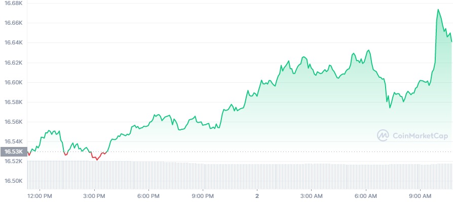 Bitcoin price today is $16,641.24 USD with a 24-hour trading volume of $9,707,832,662 USD.Bitcoin is up 0.68% in the last 24 hours.