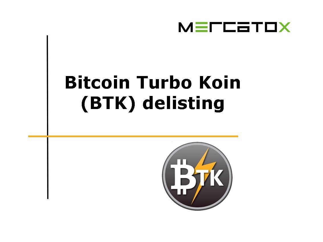 Please be informed that Bitcoin Turbo Koin (BTK) will be delisted from Mercatox due to the BTK developer request.