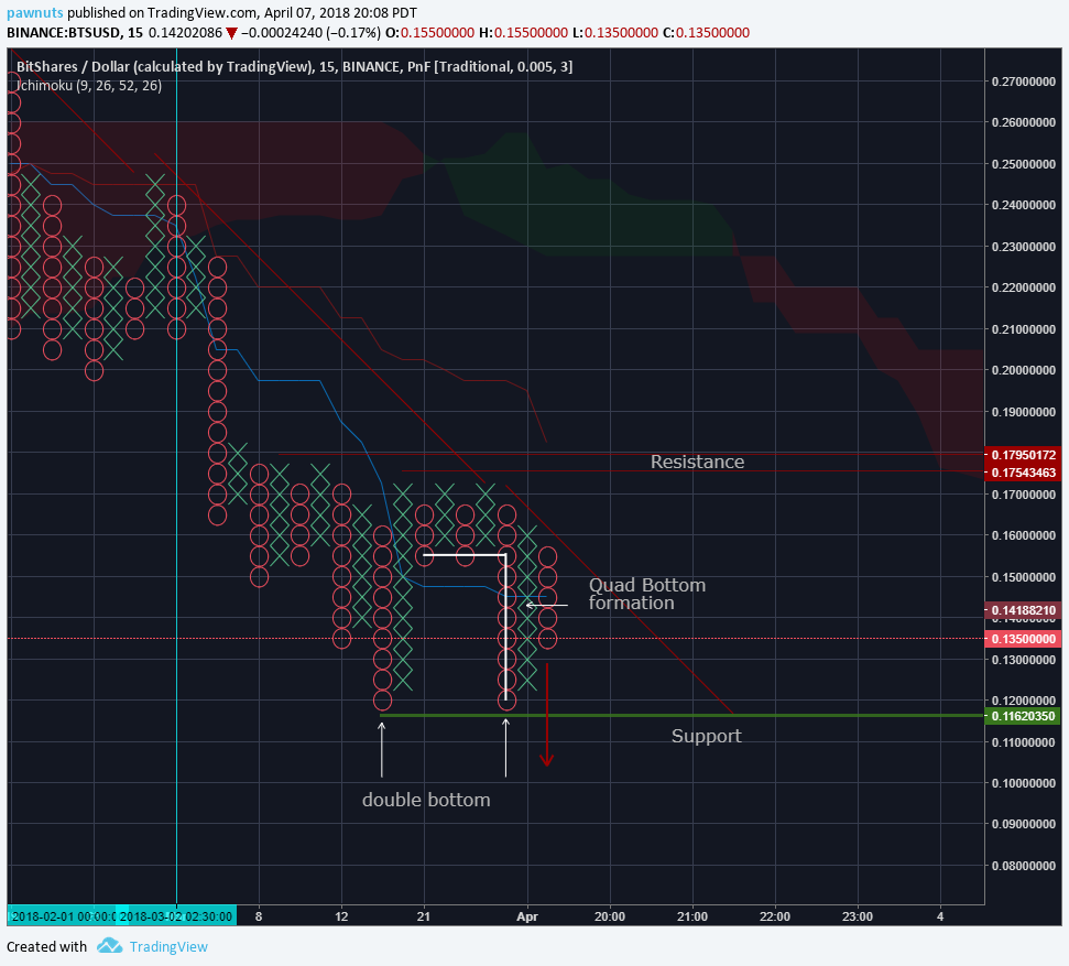 Interesting stuff is happening this weekend! BTC has seemingly double bottomed and so has BTS, however, this is not guaranteed. If the price action follows the red arrow then we will see the development of a quad bottom, and with the strong resistance above that does not bode well for future bull ambitions. However, historically when we have diverged from the Ichimoku cloud like this strong signals in the direction of the trend turn into traps! I will keep watch for a bear trap and let you guys know HERE on my trading view idea.