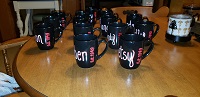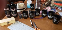 I also had the pleasure of painting some coffee mugs for a friend of mine who had her 69th Birthday. She decided to have a party at a place called 'Signs Bayou' where you bring food and alcohol and you can paint a sign for your house. I decided to go with a two sided sign and it was a really cool experience. But first, the mugs...