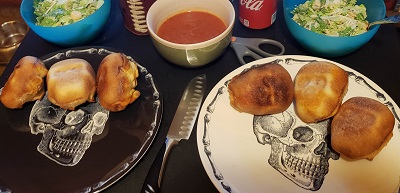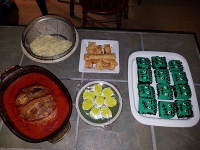 I did something cool for dinner Halloween Night. I started a new tradition last year and decided to cook spooky meals on the last day of October. Last year, my son was still living at home so it was a little more elaborate. I'll show you those first. I love cooking and loved making these creepy vittles.