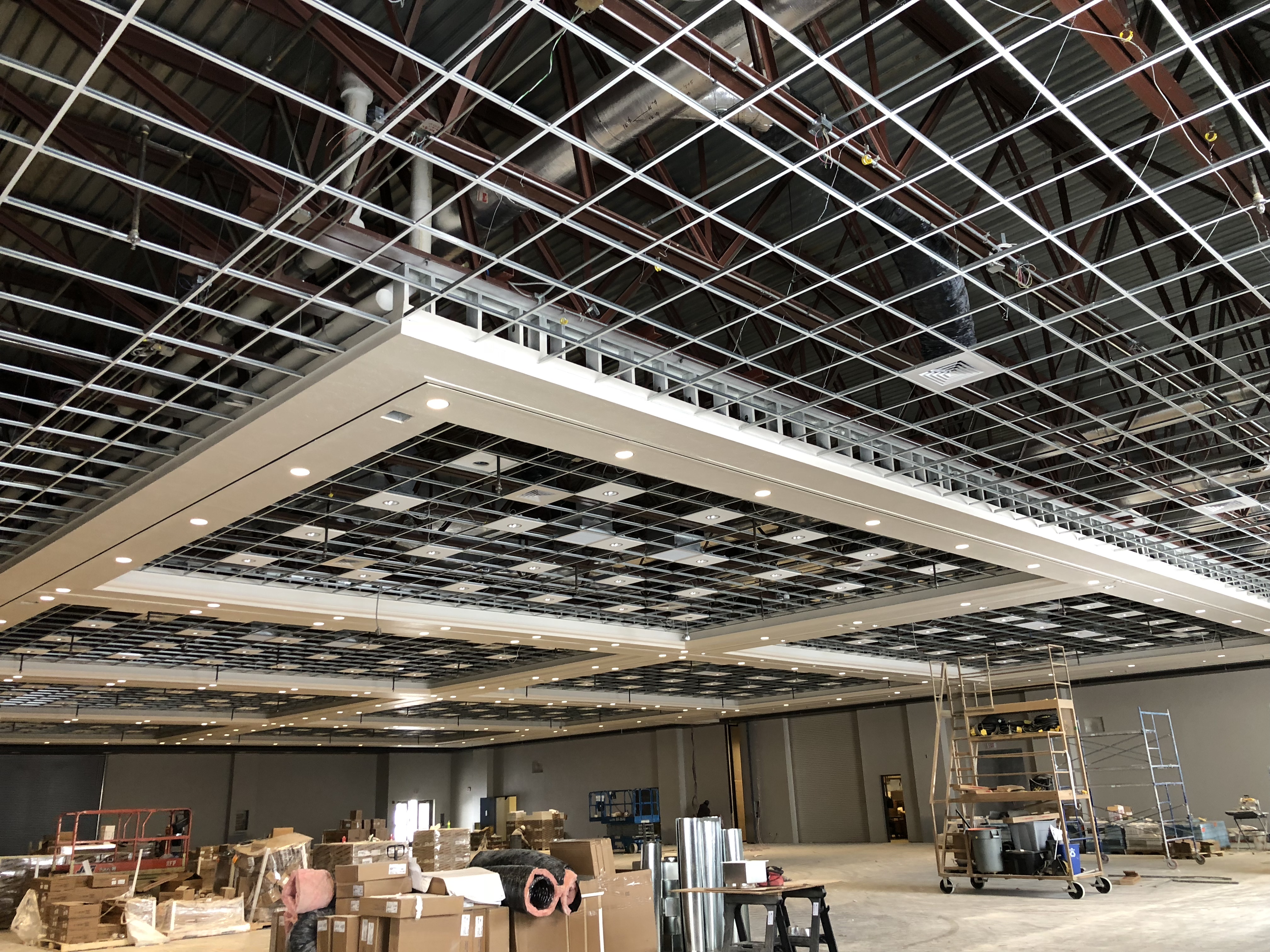 Once we get all of the grid work done we will let the other trades put lights and heat drops in before we drop the tile