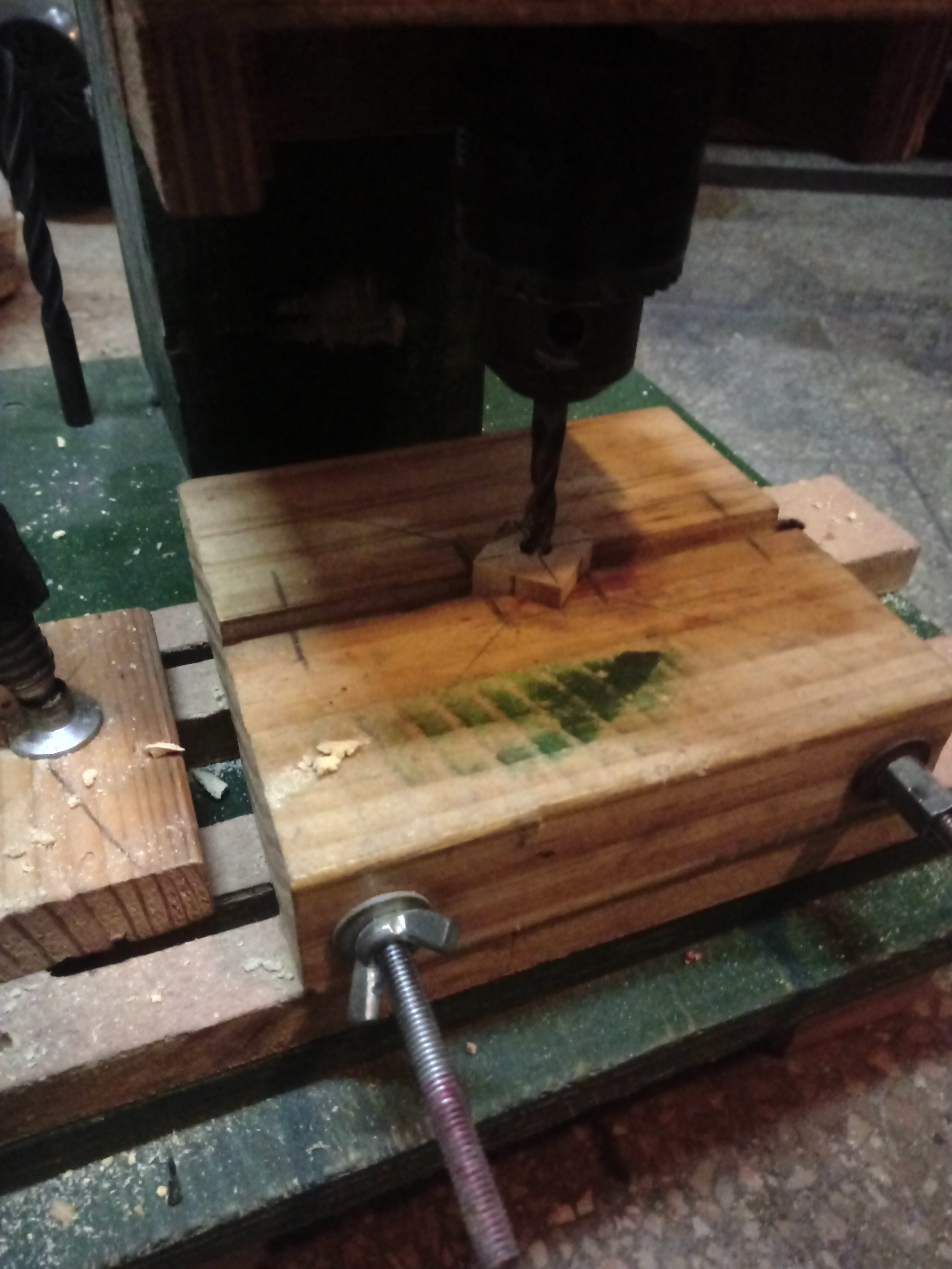 Quindi a questo punto ho provveduto a forare i blocchetti di legno in base al diametro dei tubetti, che in questo caso avevano un diametro di 6,5 mm, quindi ho forato con una punta da 7 mm.Si ragazzi diciamo che il diametro del foro deve essere qualche decimo più largo rispetto al tubetto....!!!!