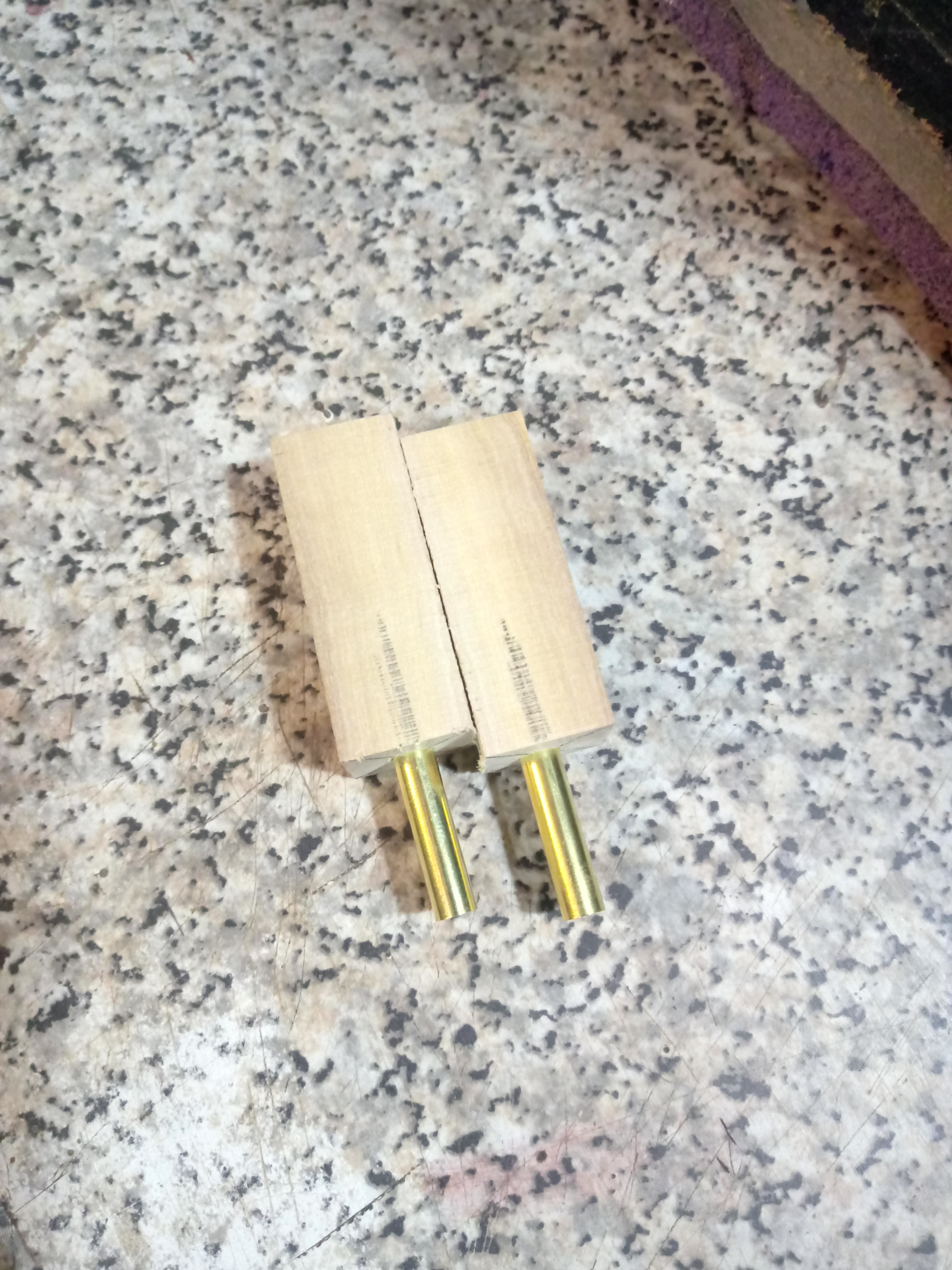 Fatto anche il foro ho provveduto ad incollare i tubetti nel legno,come potete vedere dalla foto......!!!