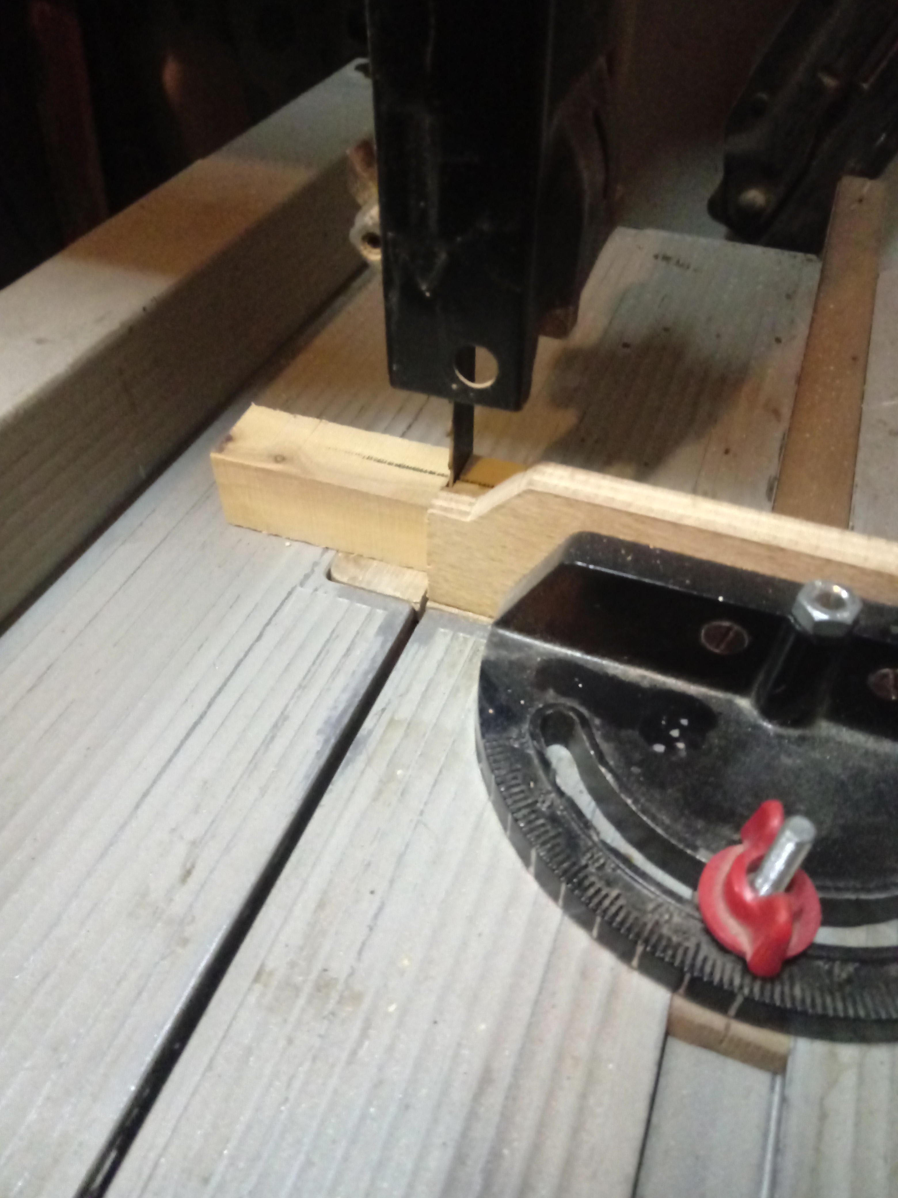 Ho tagliato un pezzo di ulivo di 2,5 cm * 2,5 cm inizialmente lungo circa 18 cm con la sega a nastro.