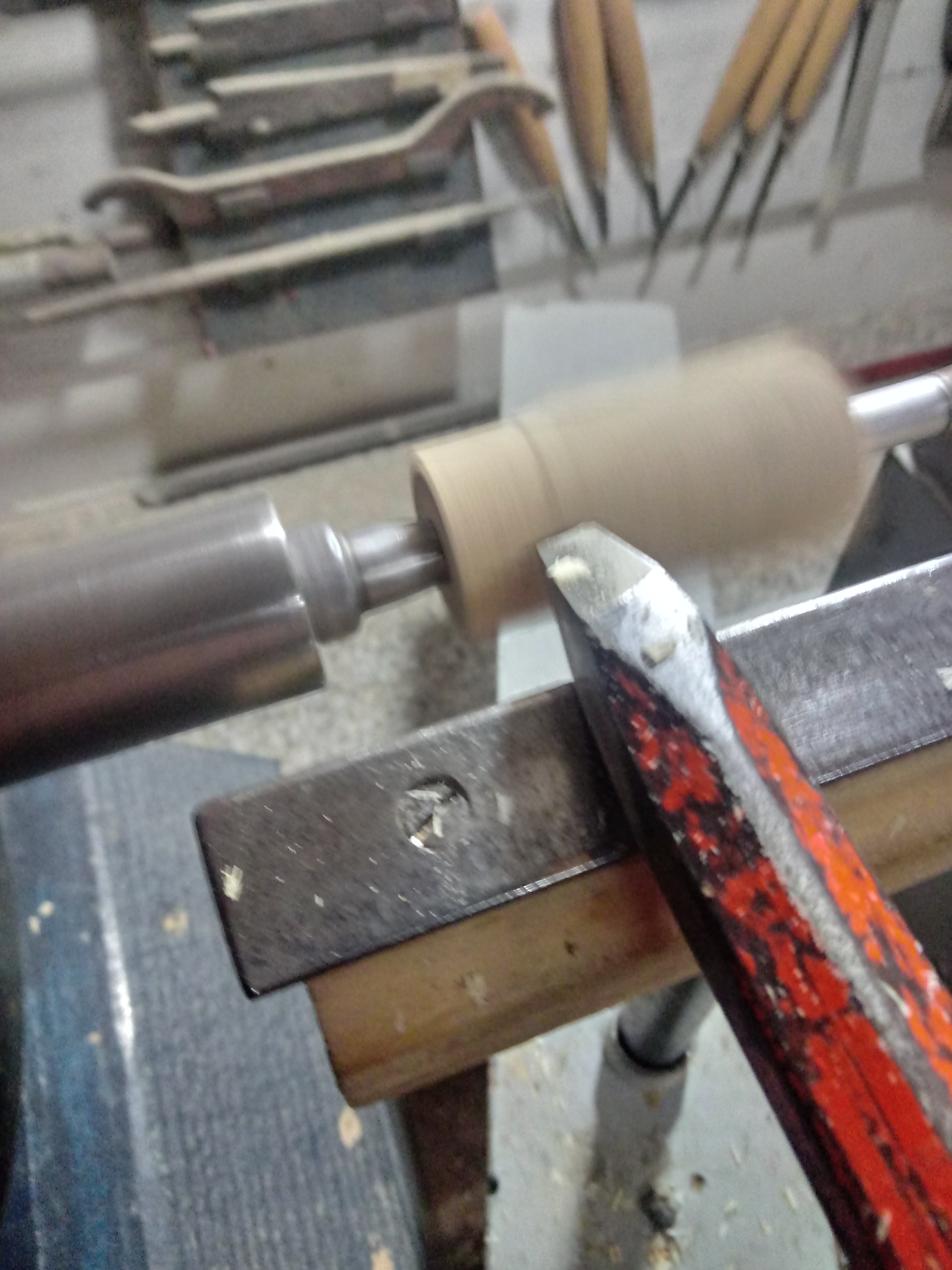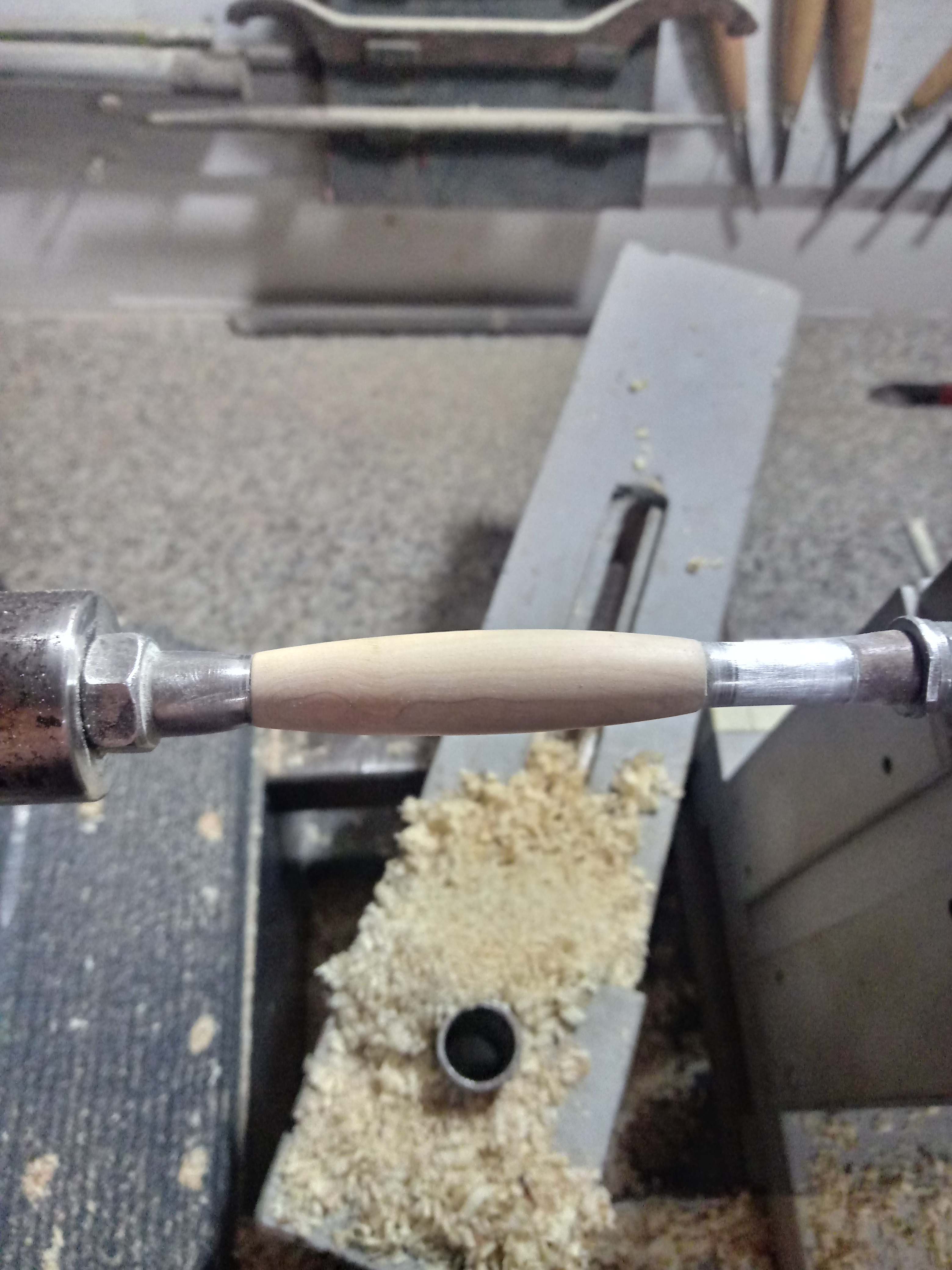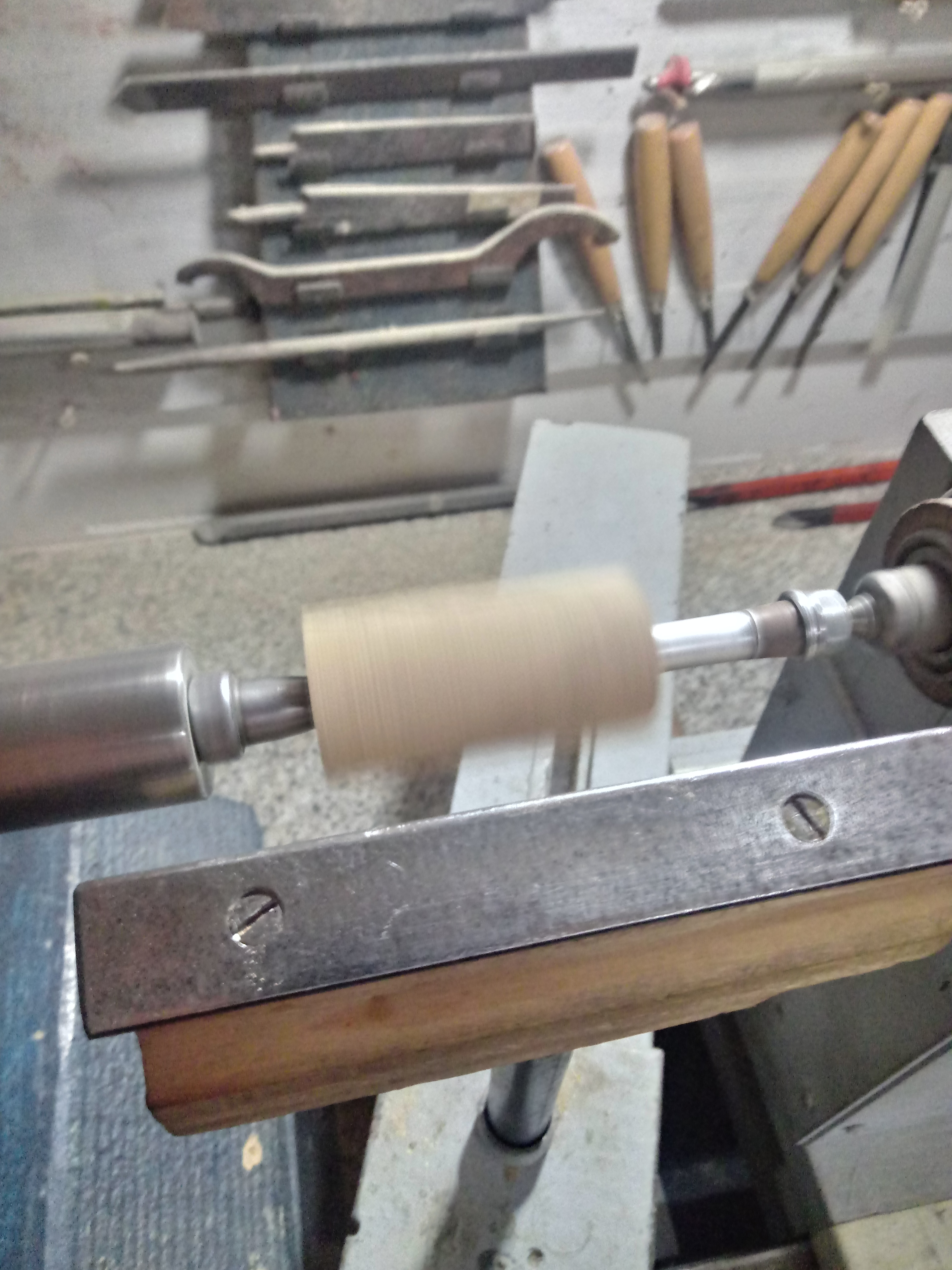 Pareggiato e squadrato i blocchetti di legno, possiamo montare il tutto al tornio per mezzo di un mandrino e quindi cominciare con la tornitura vera e propria della penna, cioè andiamo a modellare il legno in base al progetto e la forma che dobbiamo realizzare.....!!!!