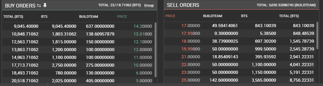 @warpedpoetic Do you have a bitshares account? Once logged in search for Buildteam. You will find multiple buy and sell orders as per the below..