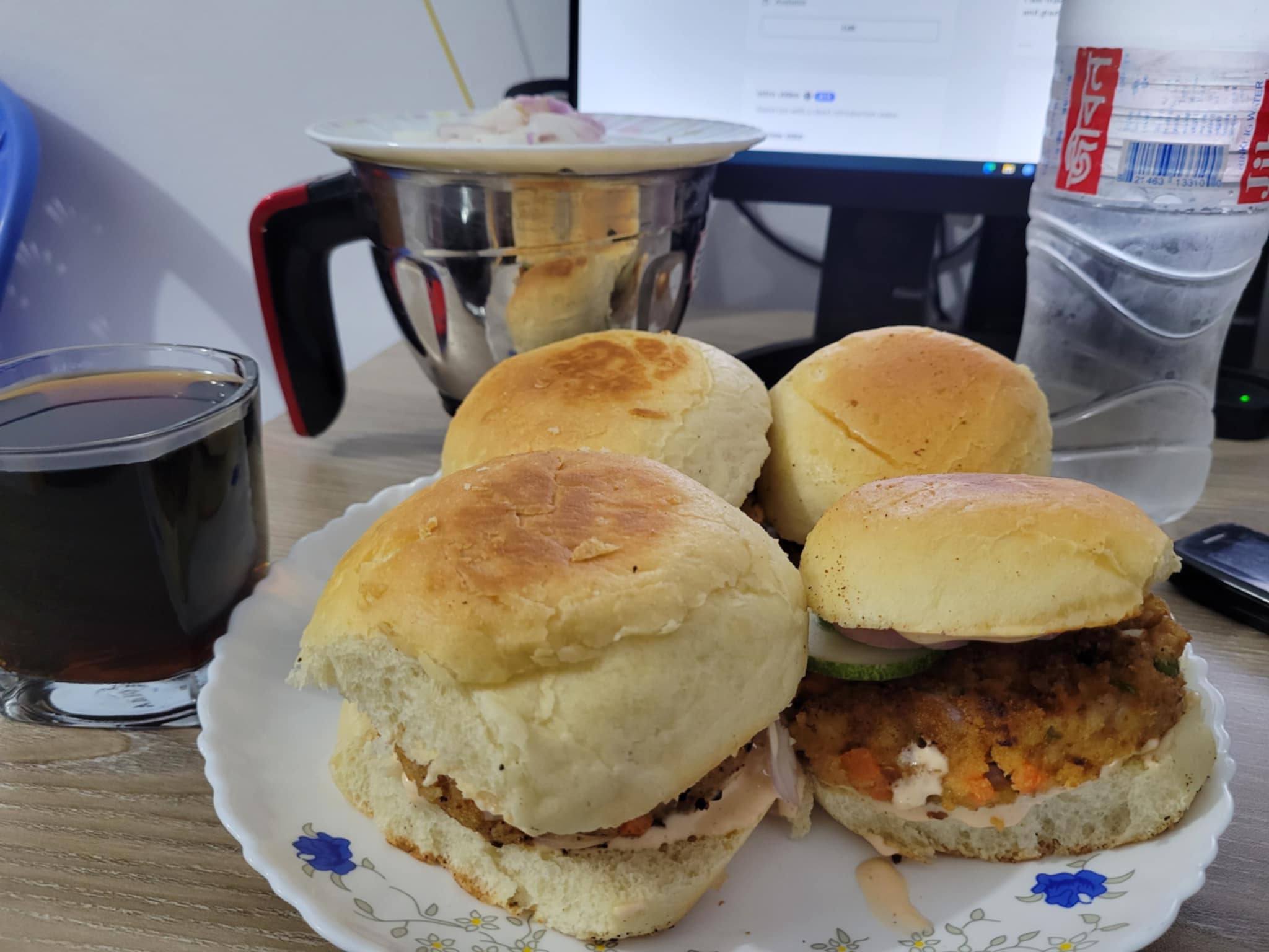 আমি নিলাম যাতে গোল সেপ ভালো করে দেওয়া যায়। সিদ্ধ করা মাংস আলুর দাগ পেঁয়াজ মরিচ খাওয়ার দিয়ে একসাথে মেখে নিলাম। ওইগুলোর মধ্যে গরম মসলা দিয়েছিলাম। তারপরে ছোট ছোট পেটির মতো করে বানিয়ে ওগুলো ভেজে নিলাম। তারপর পেটিগুলো ভাজা হয়ে গেলে বার্গারের মধ্যে বার্গার সস আর টমেটো সস দিয়ে পেটিগুলো দিয়ে রেডি করে নিলাম তারপরে এক বাইট নিলাম।খেয়ে দেখলাম এত বাজে লাগছে খেতে তার থেকে শুধু শুধু বান দিয়ে সস খেতে ভালো লাগছে। কি আর করার সব সময় তো একরকম হয় না অনেক কষ্ট করে বানাইছিলাম কিন্তু তারপরও মনকে সান্ত্বনা দিলাম।অন্যদিন বানালে ভালো করে বানানো যাবে।