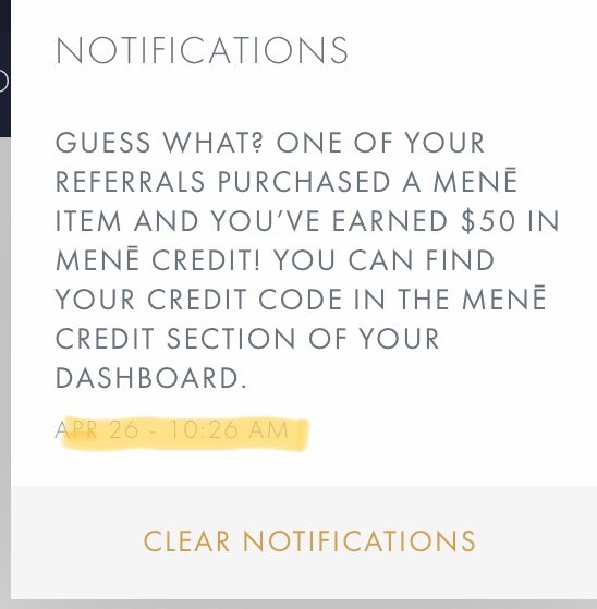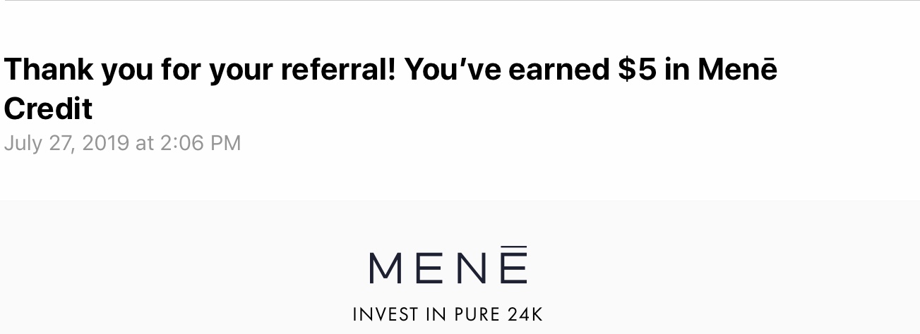 Please read the full details of the referral program here: https://mene.com/customer-service