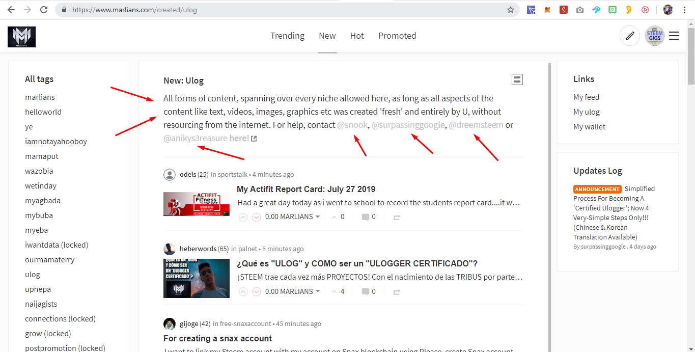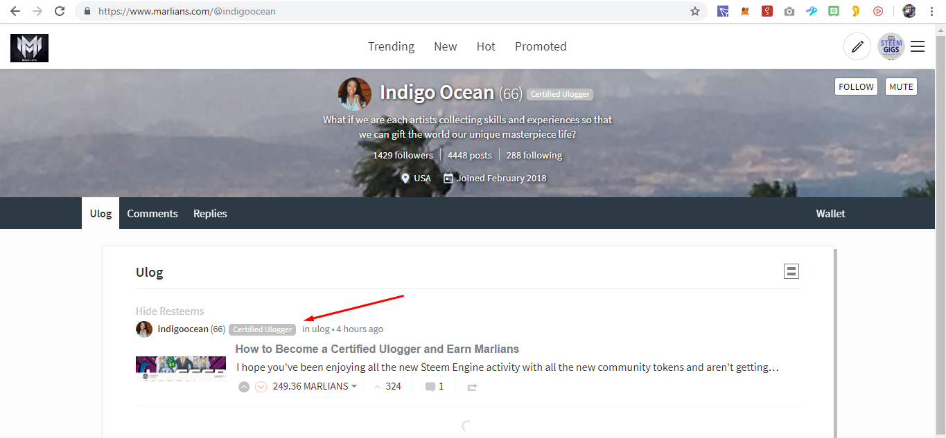 Certfied uloggers have 'a label' beside their profiles that identifies them across 'marlians.com', so please look up to them and look to support them too, via engagement and curation.
