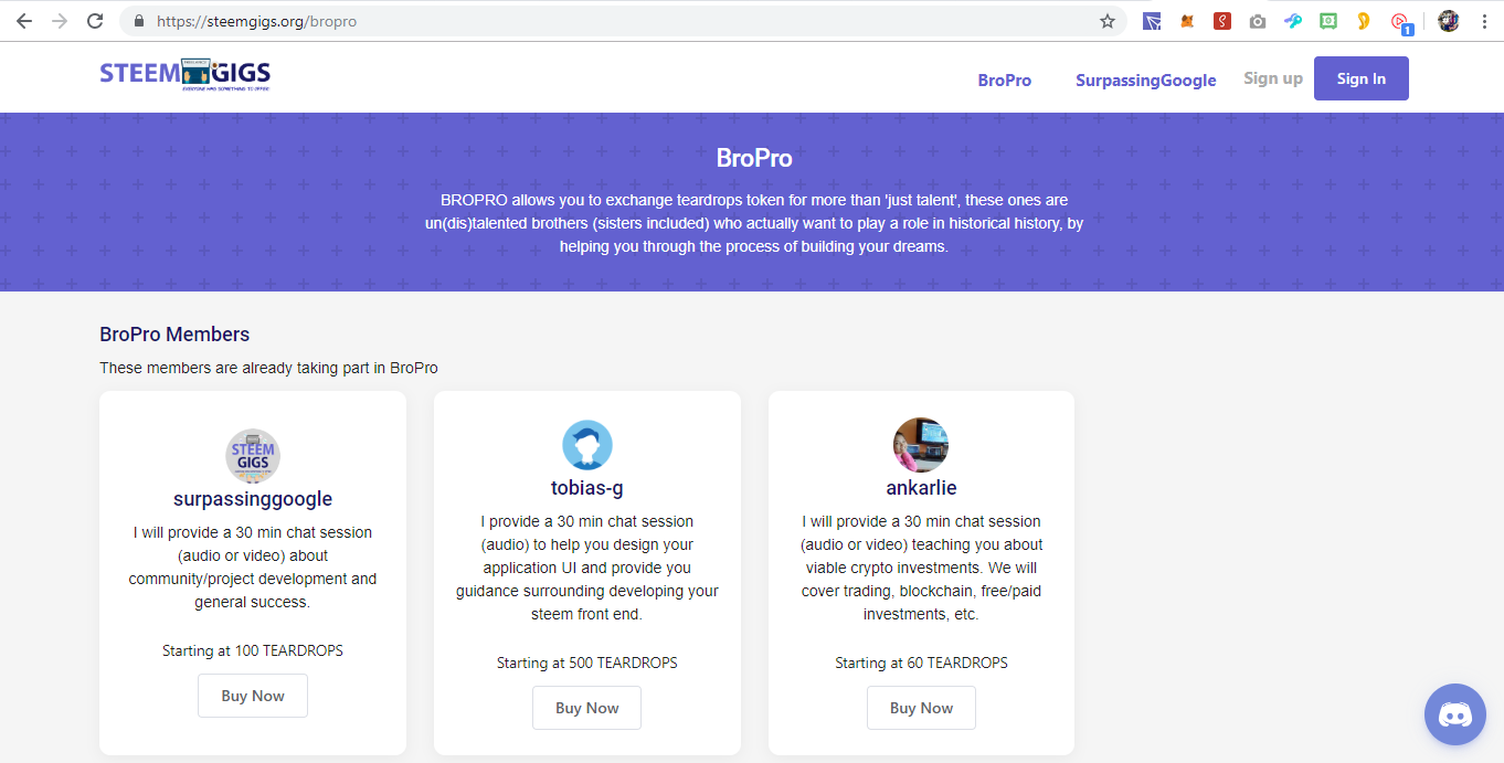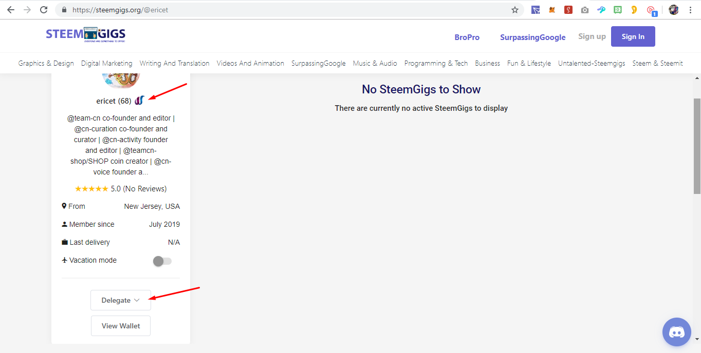 For instance, see 'steemgigs.org/bropro' as depicted on the screenshot below: