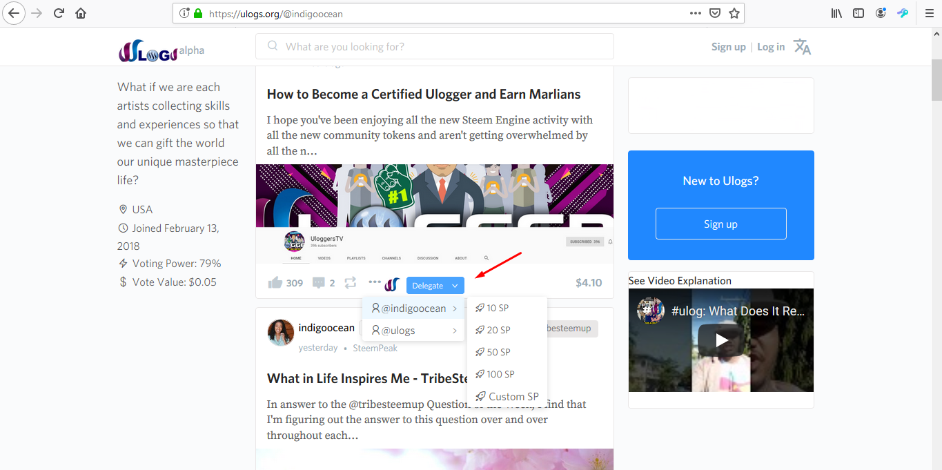 Only certified uloggers have a 'delegate button' on steemgigs.org