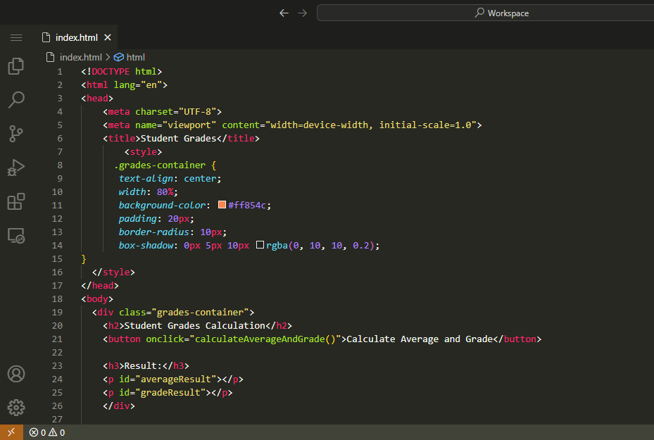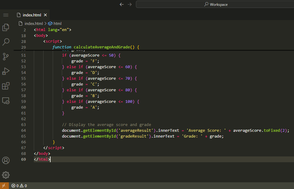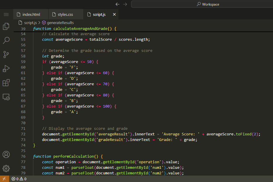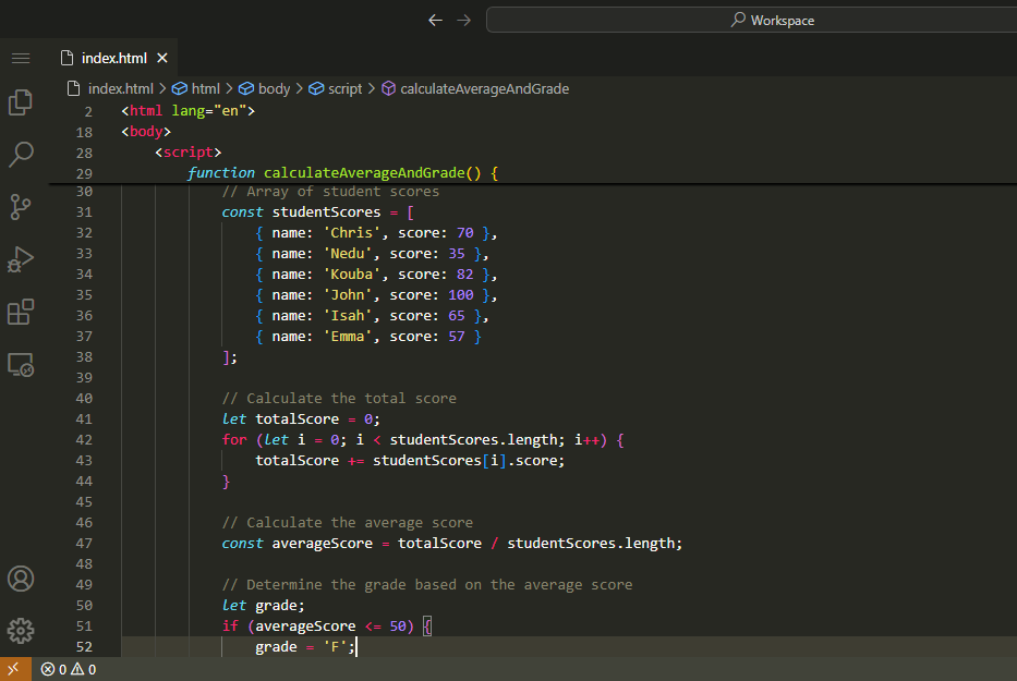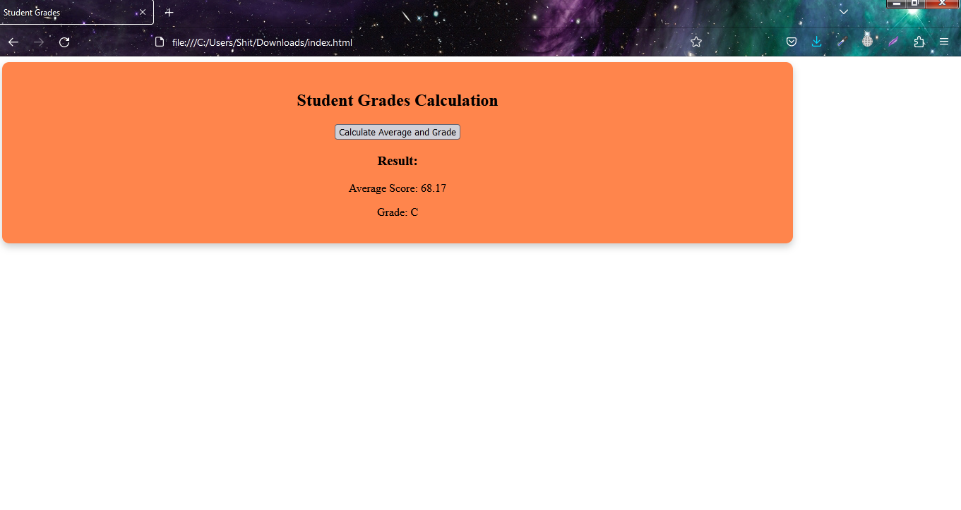 I have done this with predefined values of Students marks and grades. But we can do it in different way as well which I will show you in the last video Output. We can even input values and then it will calculate average score and grade.