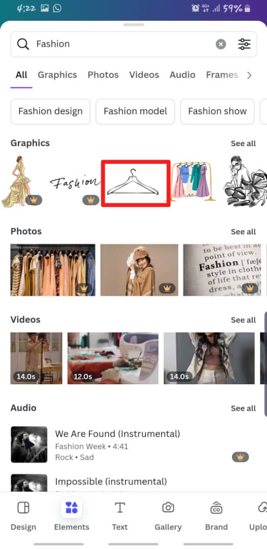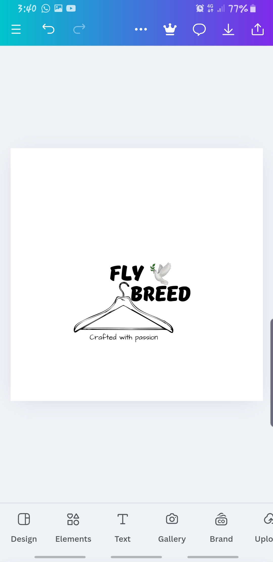 - After writing the name of the brand which is Fly 🕊️ breed. A Fashion brand, I added a fashion symbol in form of a hanger from the elements tab.