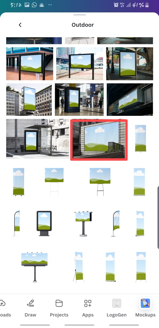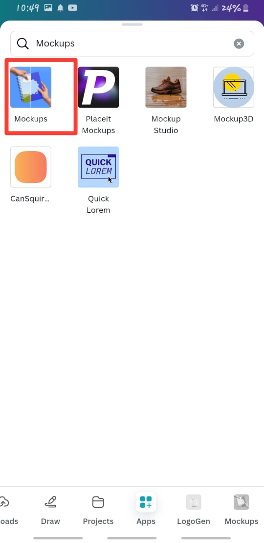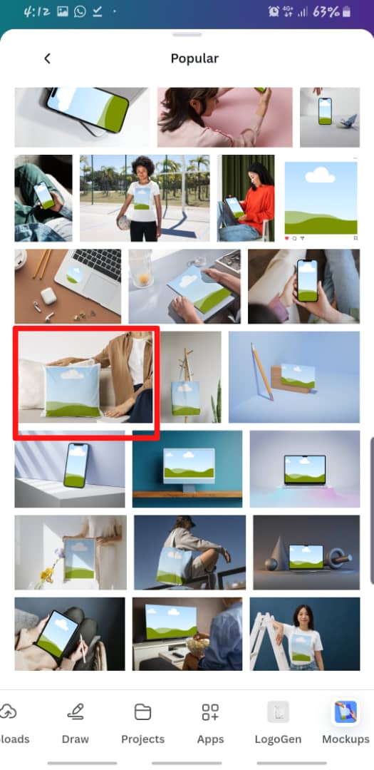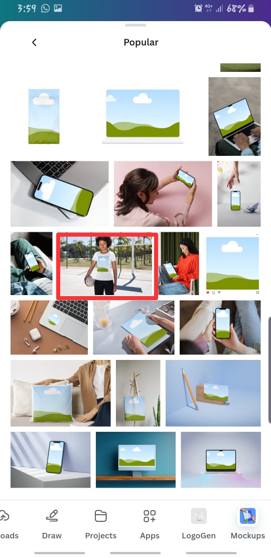 A repetition of the step above. Opened the app tabs searched for Mockup up and chose the suitable Mockup design to use.