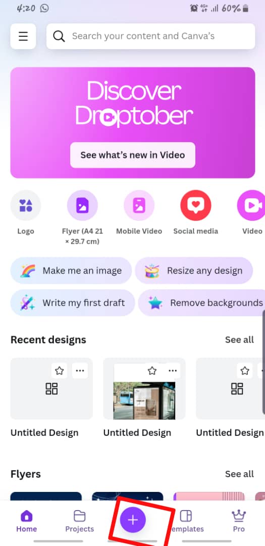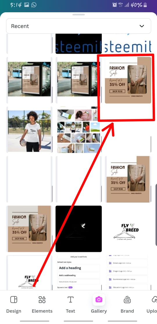 I opened the canva app and got started. Here are the procedures. On creating this logo,I went back to last week lesson and I chose to create a combination logo which is the combination of a symbol and the name of the brand