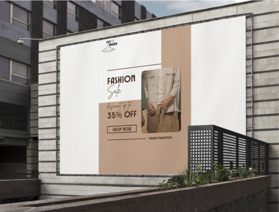 Search for an outdoor advertisement means like "billboard mockup" where you can put in your flyer design or banner for promotion.