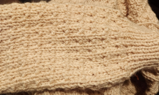 My calculation is that I'll have just enough yarn to complete this project. When I started it I thought 600g should be plenty (and it should) but the texture of the Andalusian stitch has a 'shortening' effect on the length.