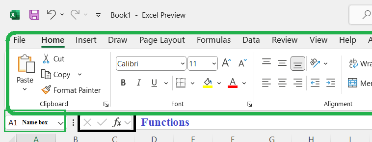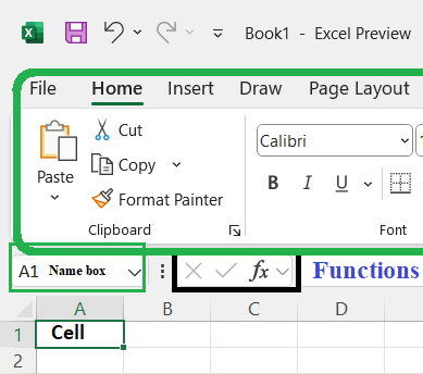 Ribbon tabs: constitute a majority of tabs which are necessary for editing a spreadsheet.